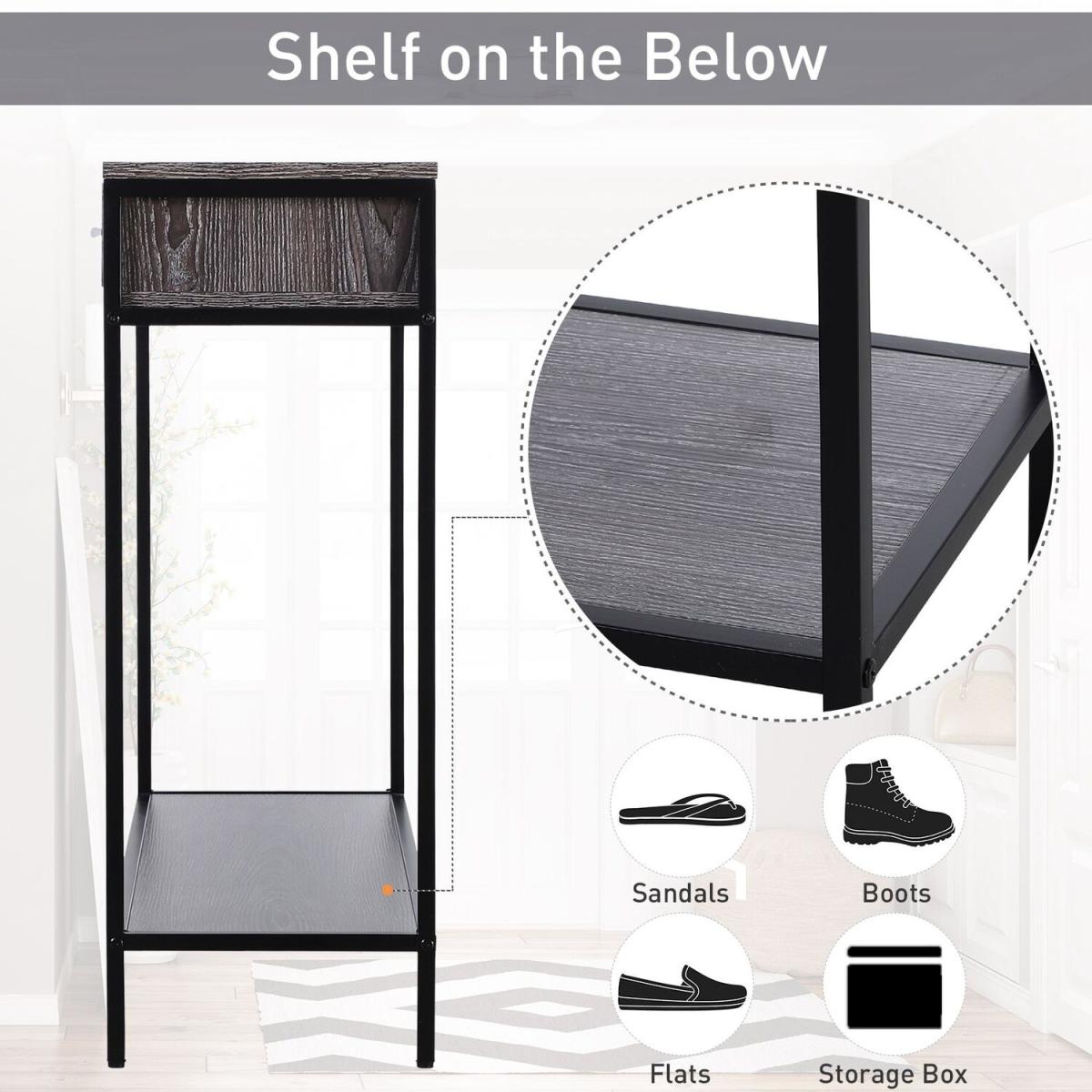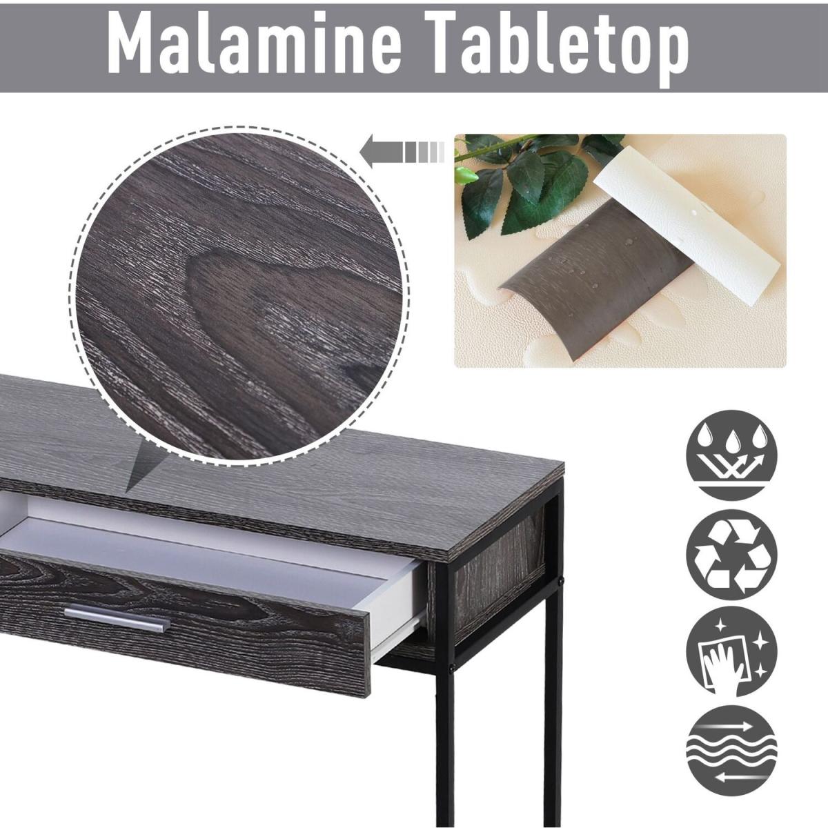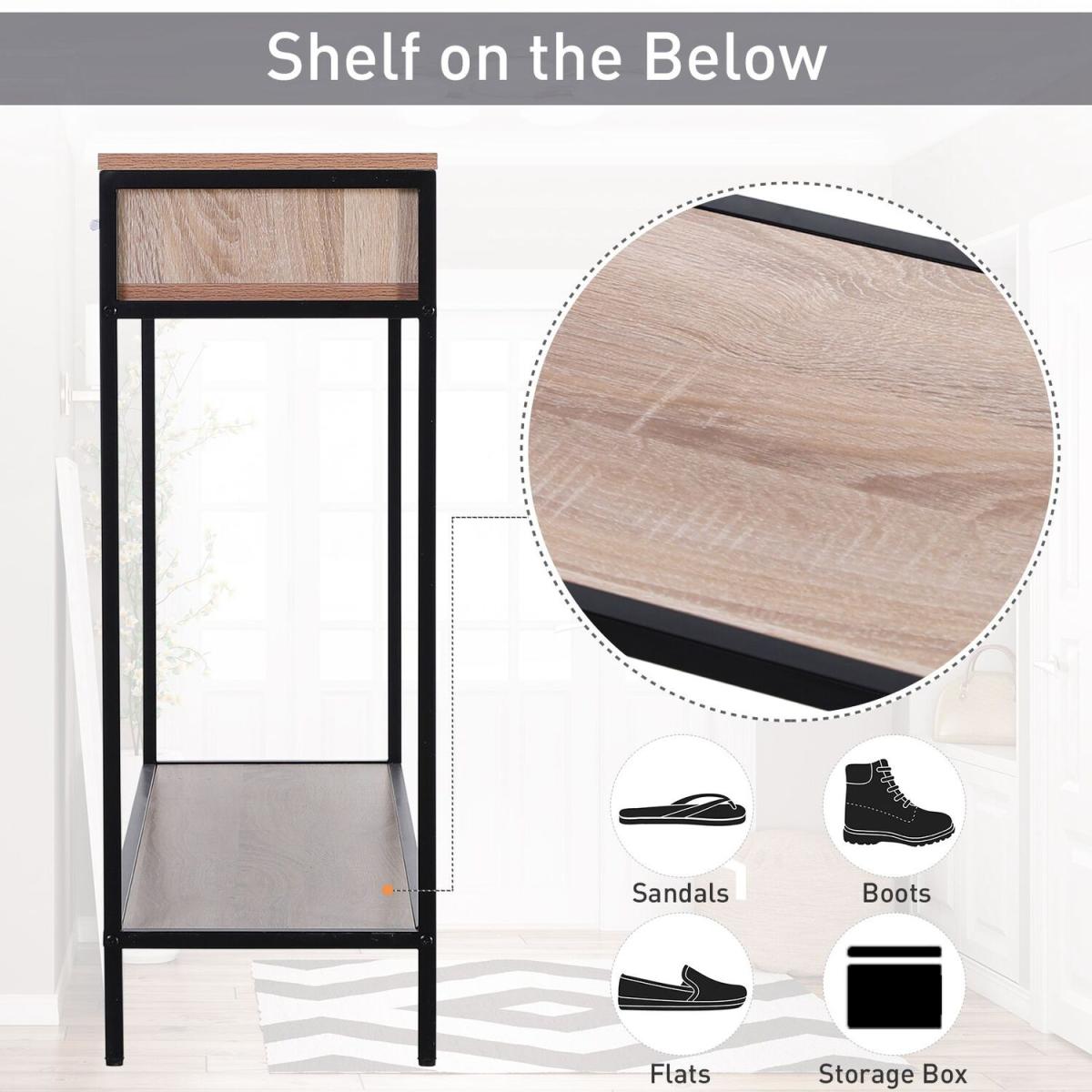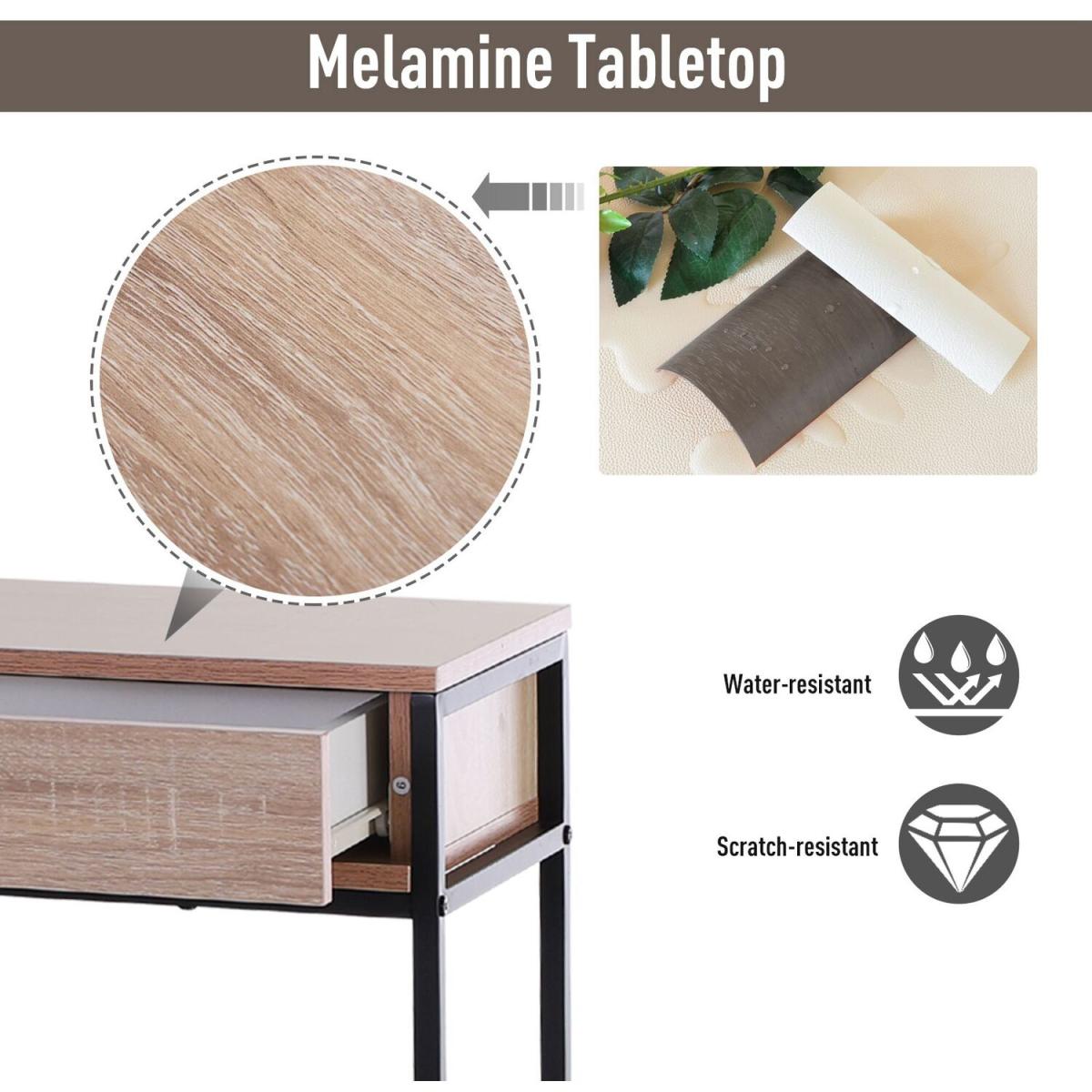 Blending style and storage together, this industrial console table from HOMCOM is a distinctive piece of furniture you'll love having at home from the start. Crafted from high-quality particle board, it has been made with strength and durability in mind to provide you years of use, with a solid steel frame that keeps it upright and stable on the ground. Spacious in design, it features two slide-out drawers and a spacious top and bottom table, making it suitable for use all around the home and making it easy for you to keep your space tidy. Finished in a smooth oak wood tone design, it can be cleaned and kept beautiful with just the wipe of a cloth. Now you just have to decide where to put it.