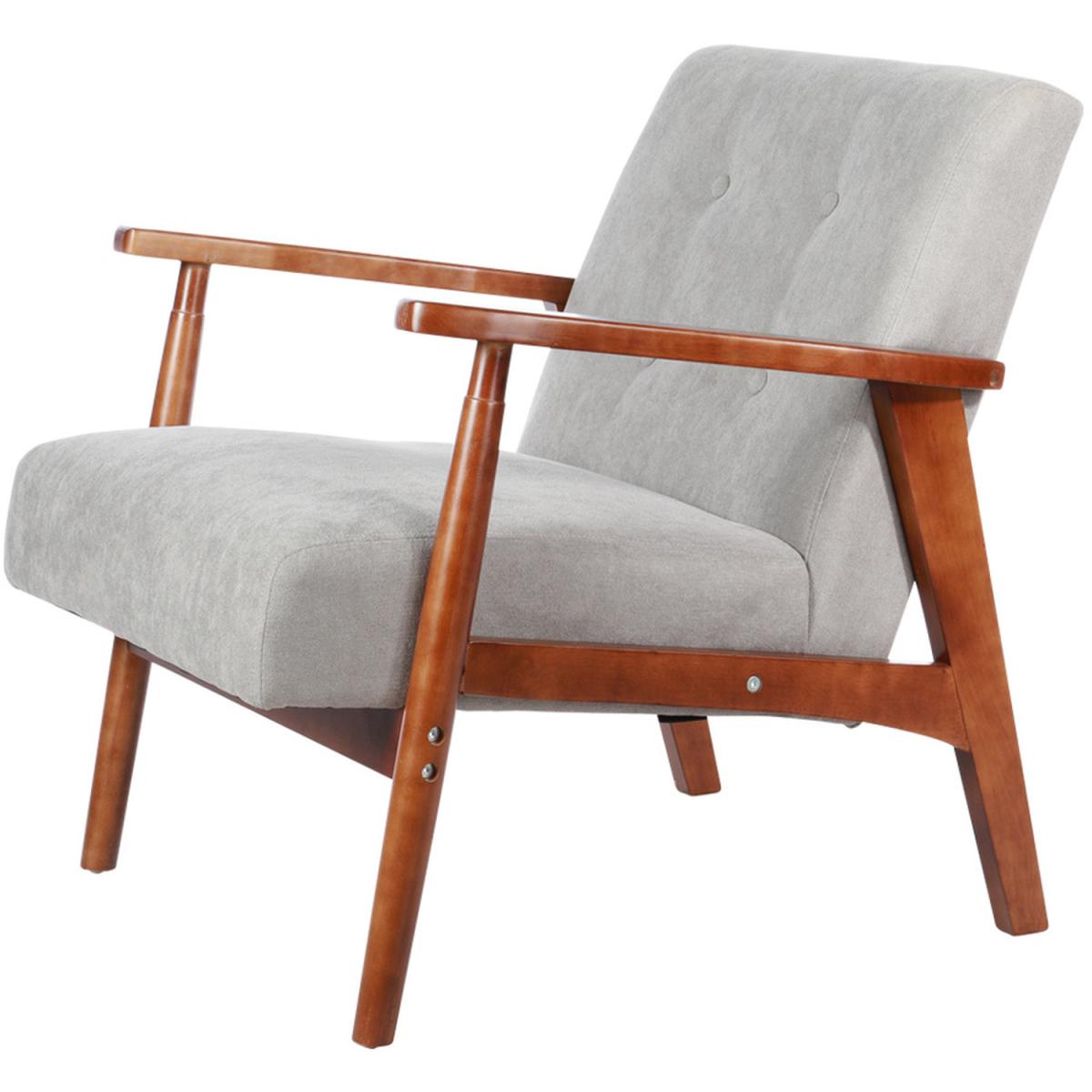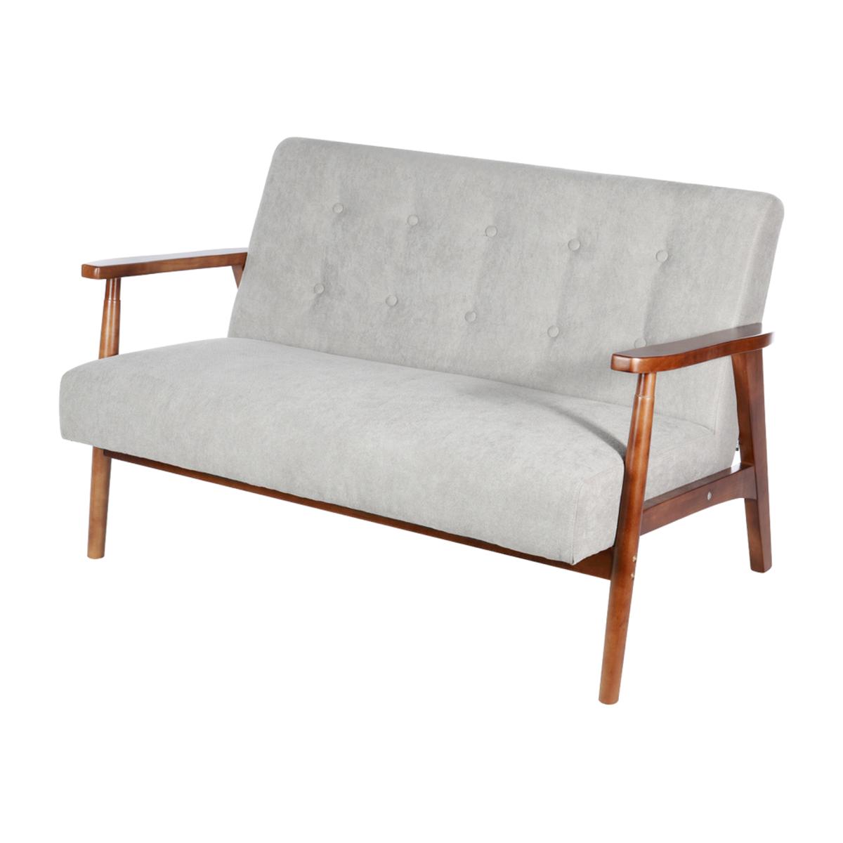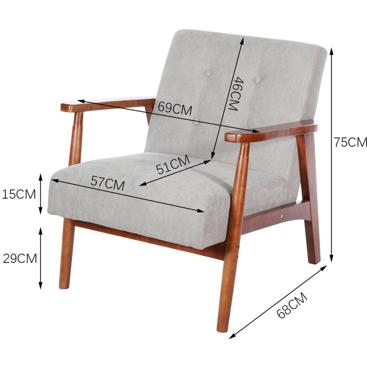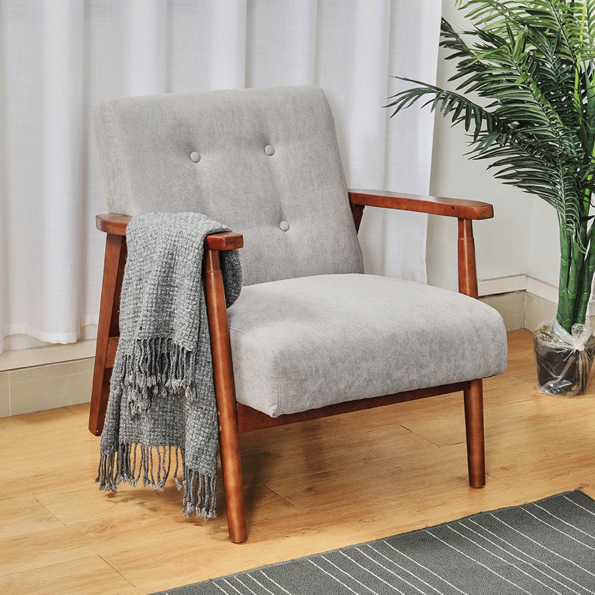 Our arm sofa comes in a comfortable fabric, seat with soft sponge infilling and thick padded cushion offering added comfort. With a tufted button design for a touch of sophistication, features a unique open-framed arm design, complete with wooden accent bolt covers for an authentic retro finish. Design with a low gravity centre, long seat depth and a slight backward tilt, this accent chair brings in more relaxation. This retro wooden armchair will be an eye-catcher in your living room and Become your favourite place to read and Relax.