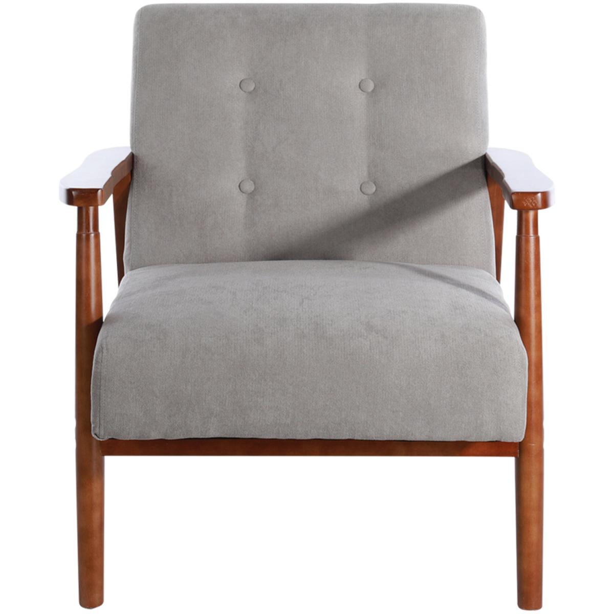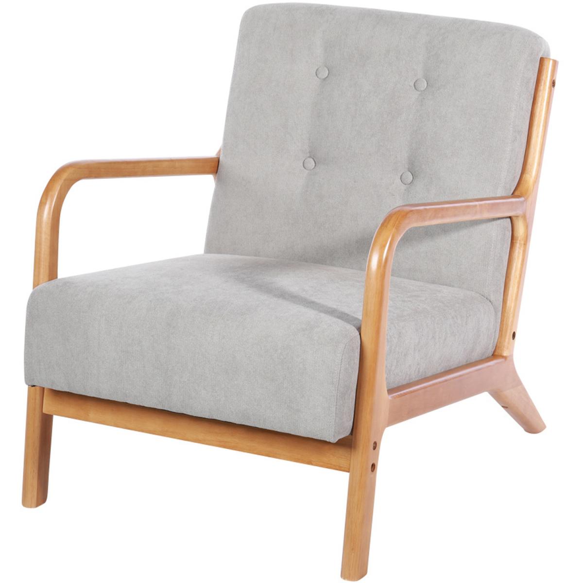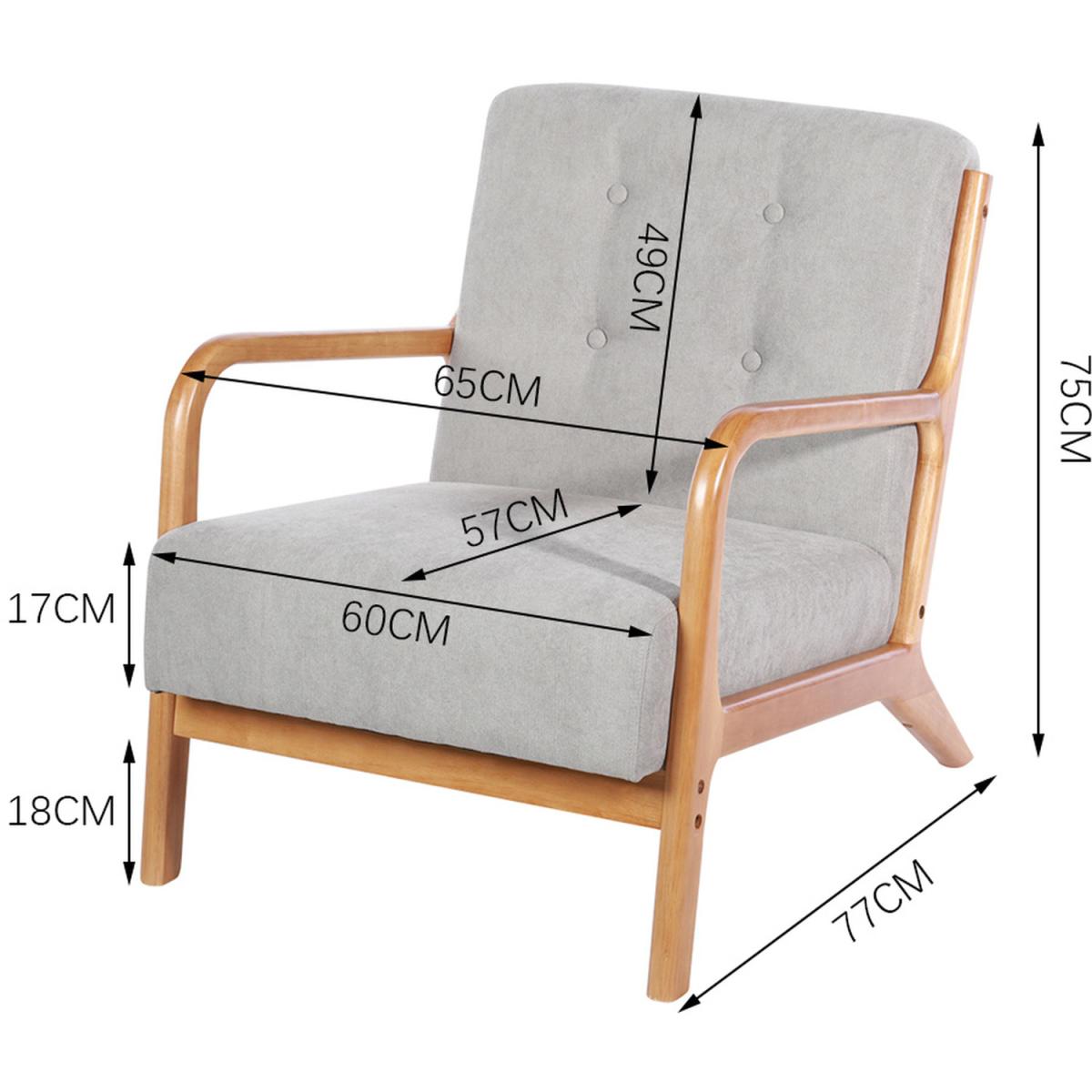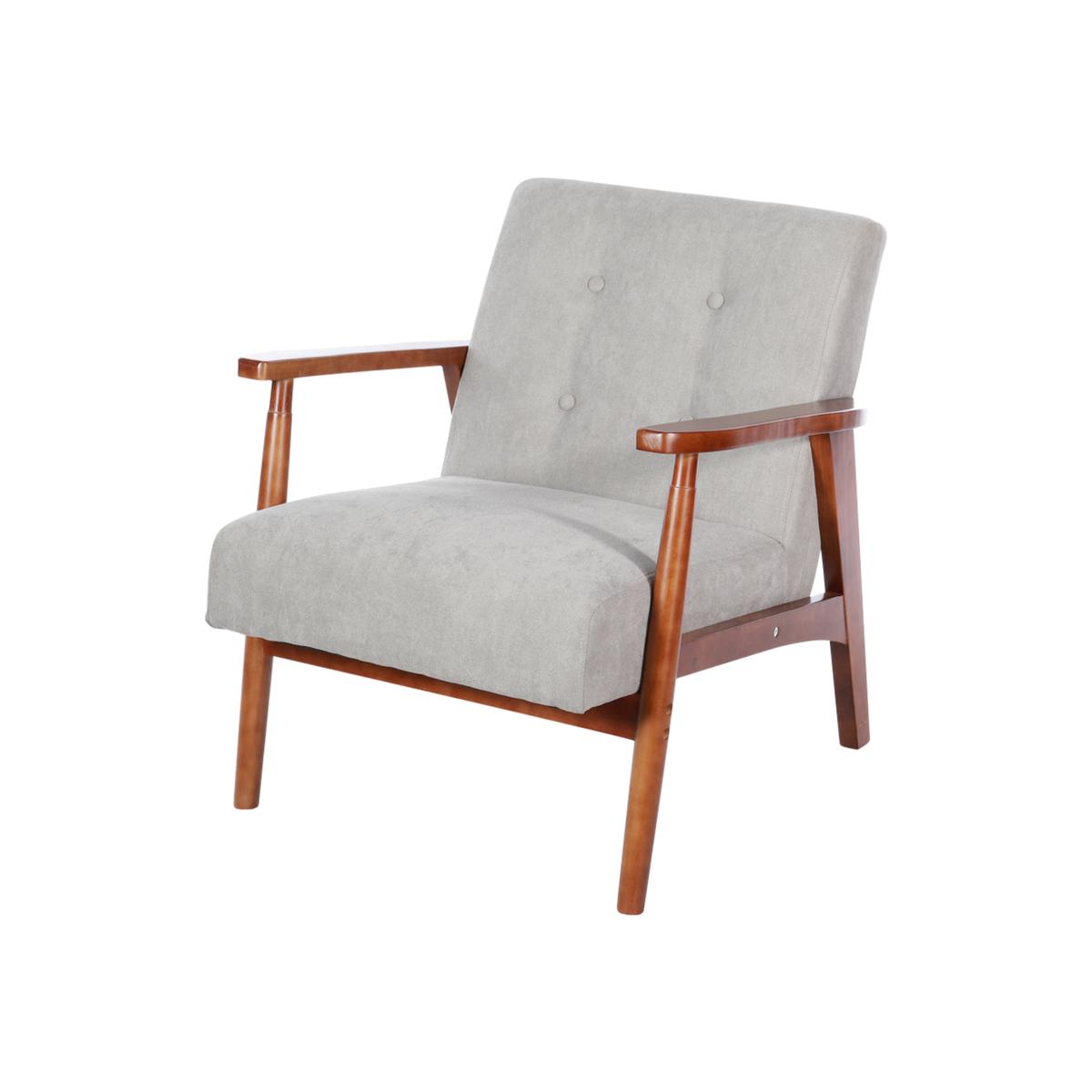 Our arm sofa comes in a comfortable fabric, seat with soft sponge infilling and thick padded cushion offering added comfort. With a tufted button design for a touch of sophistication, features a unique open-framed arm design, complete with wooden accent bolt covers for an authentic retro finish. Design with a low gravity centre, long seat depth and a slight backward tilt, this accent chair brings in more relaxation. This retro wooden armchair will be an eye-catcher in your living room and Become your favourite place to read and Relax.