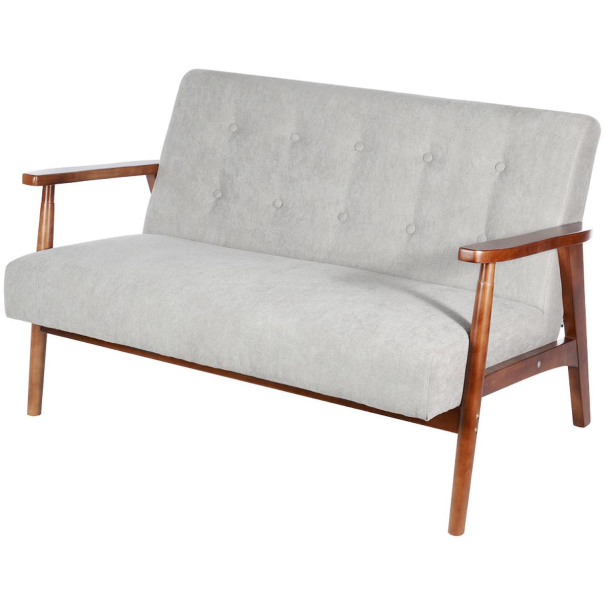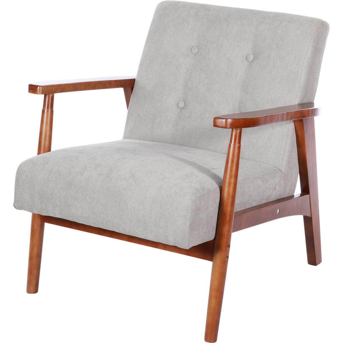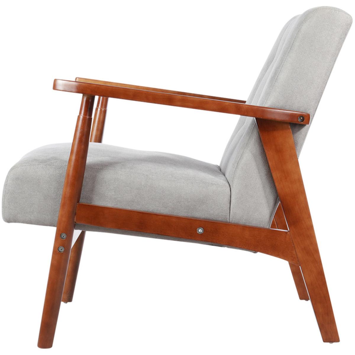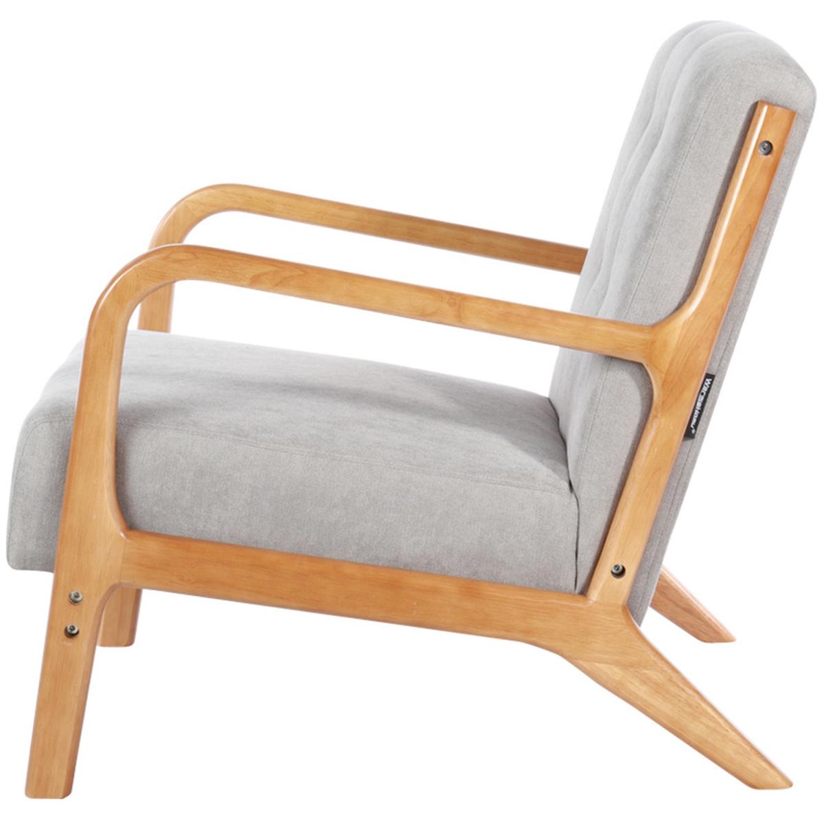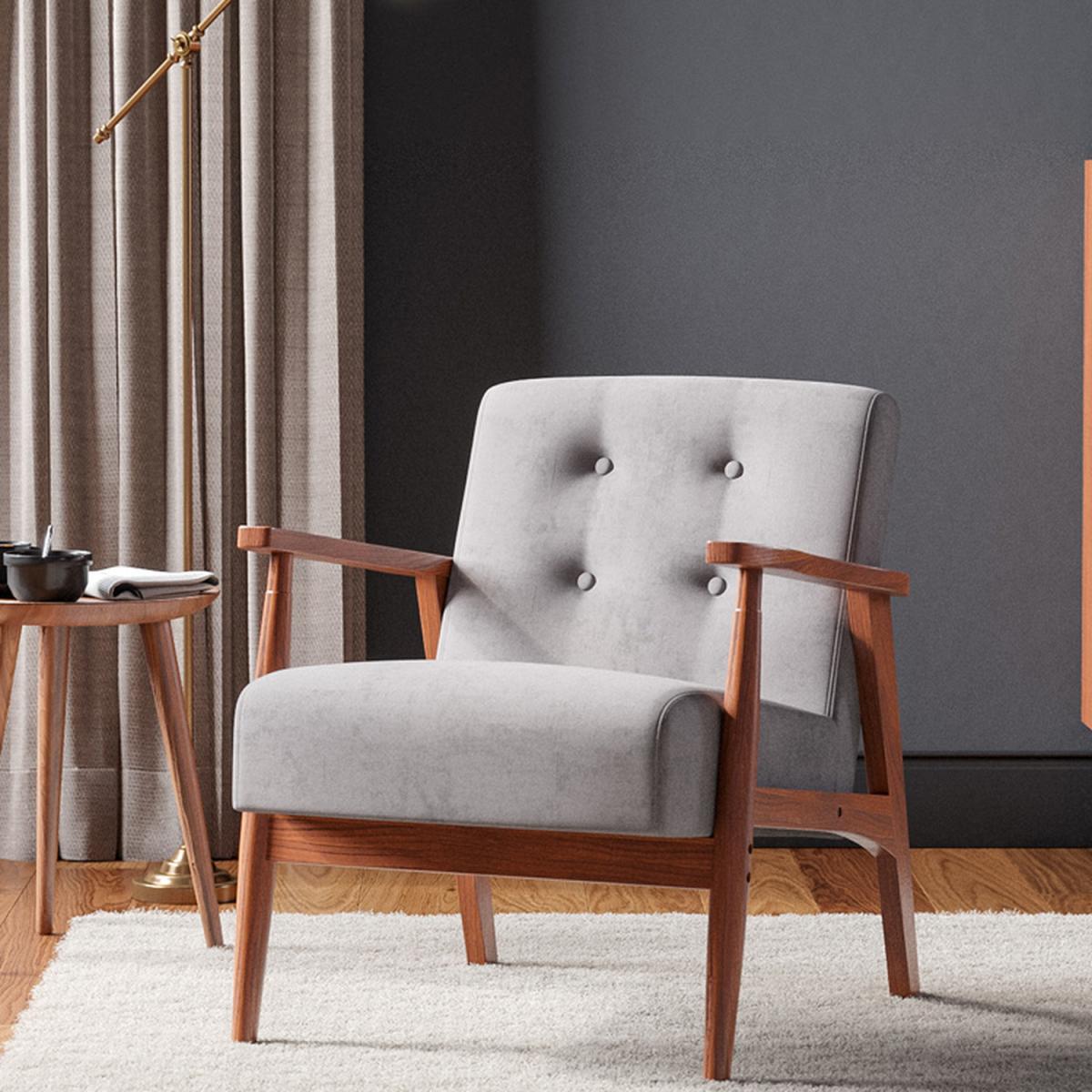 Our arm sofa comes in a comfortable fabric, seat with soft sponge infilling and thick padded cushion offering added comfort. With a tufted button design for a touch of sophistication, features a unique open-framed arm design, complete with wooden accent bolt covers for an authentic retro finish. Design with a low gravity centre, long seat depth and a slight backward tilt, this accent chair brings in more relaxation. This retro wooden armchair will be an eye-catcher in your living room and Become your favourite place to read and Relax.