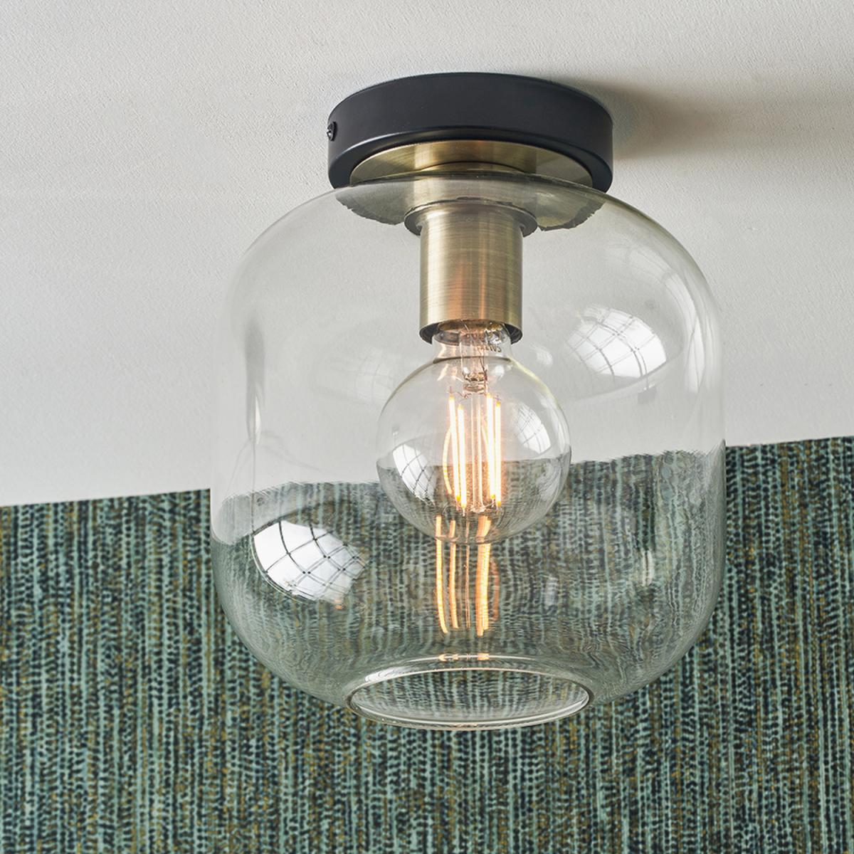 I really like this glass flush dome fitting because of its clean, industrial look, which adds a contemporary edge to a variety of interiors. It works particularly well in minimalist or urban spaces where raw materials like exposed brick or concrete are common, as it complements these with its sleek black finish and glass detail. For styling tips, consider pairing it with vintage filament bulbs for an authentic feel or installing multiple units in a row over kitchen islands or dining areas for functional, modern lighting. It’s versatile enough to sit comfortably in both residential and commercial spaces, especially where a subtle but distinctive lighting feature is desired.
