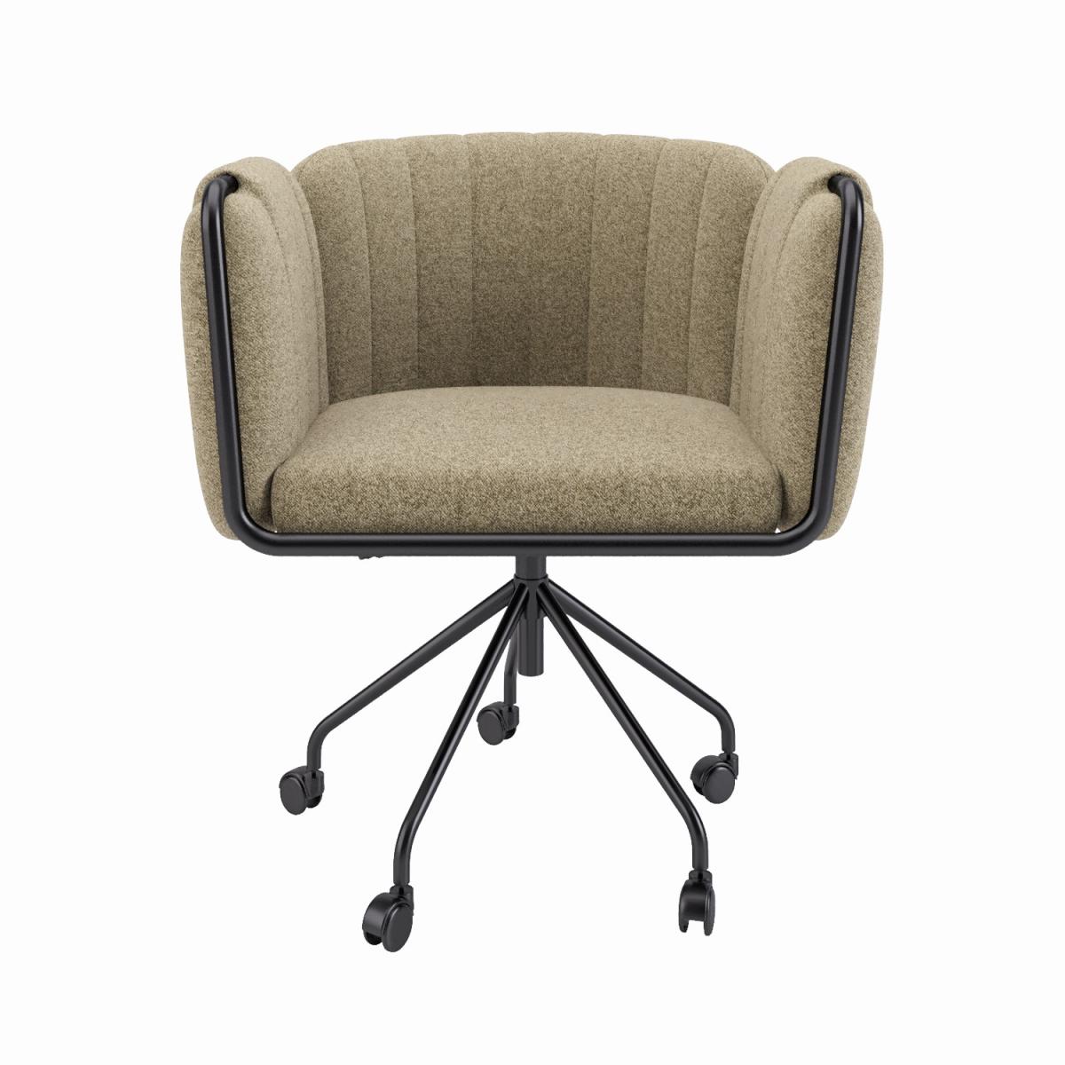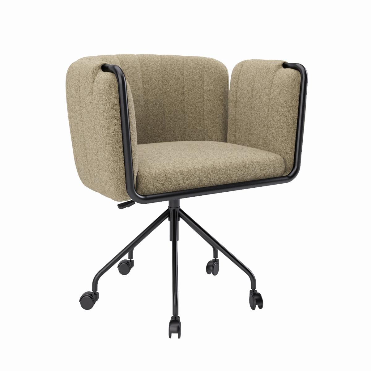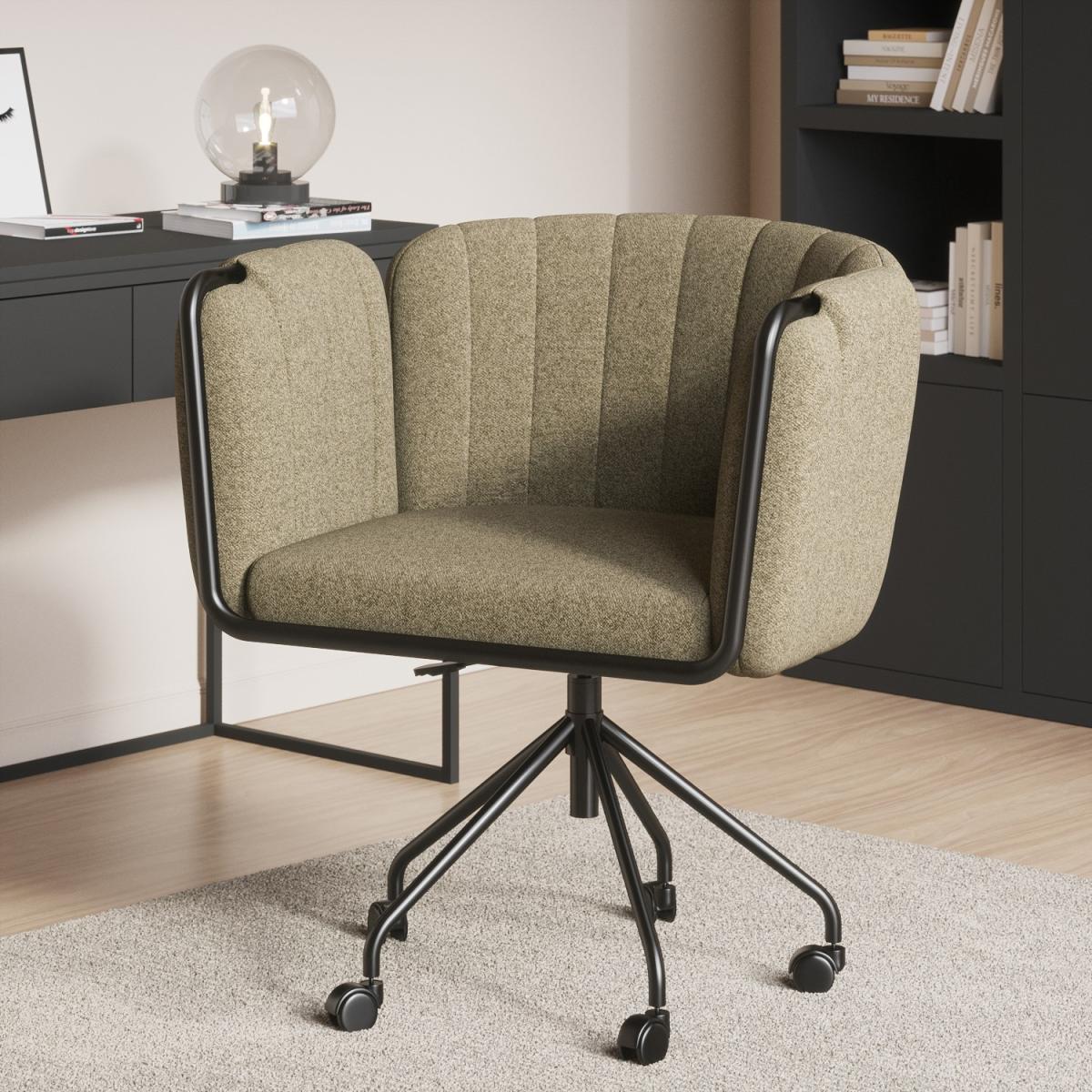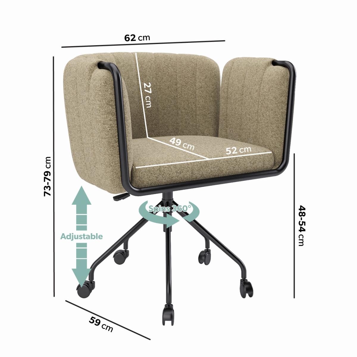 All about me. Add the perfect finishing touch to your home office with this Orlaa tub-style desk chair. It makes a great focal point thanks to the textured and ribbed upholstery and contrasting black outline frame. The curved back and arms combined with the padded seat and back offer ultimate comfort while you work. Made of iron and strong plywood it’s super durable too. Need to know. Dimensions. W62 x D60 x H73-79 cm Seat height. 48-54cm Weight. 11.75kg Max weight limit. 150kg Colour. Mink Finish. Upholstered Material. Iron plywood foam (filling) and fabric (upholstery) For use. Indoors only Assembly required. Yes just the base.