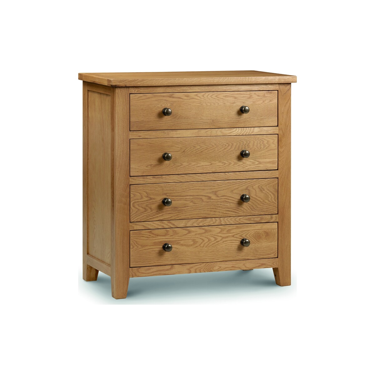 Add storage and style to your bedroom with this superb large chest of drawers. The chest houses four deep and wide drawers which provide excellent storage. The timeless design of the chest makes it a great choice whether your adding a single piece to your bedroom or having a complete revamp. Part of the Minnesota range which matches crisp style with quality materials to produce a range that will last and be loved for a lifetime. All the pieces in the collection are have Solid American White Oak frames and veneered panelling. Range specific features include tapered feet, extra thick tops (30mm), a durable waxed finish and fully dovetailed drawers with metal handles. Specification.