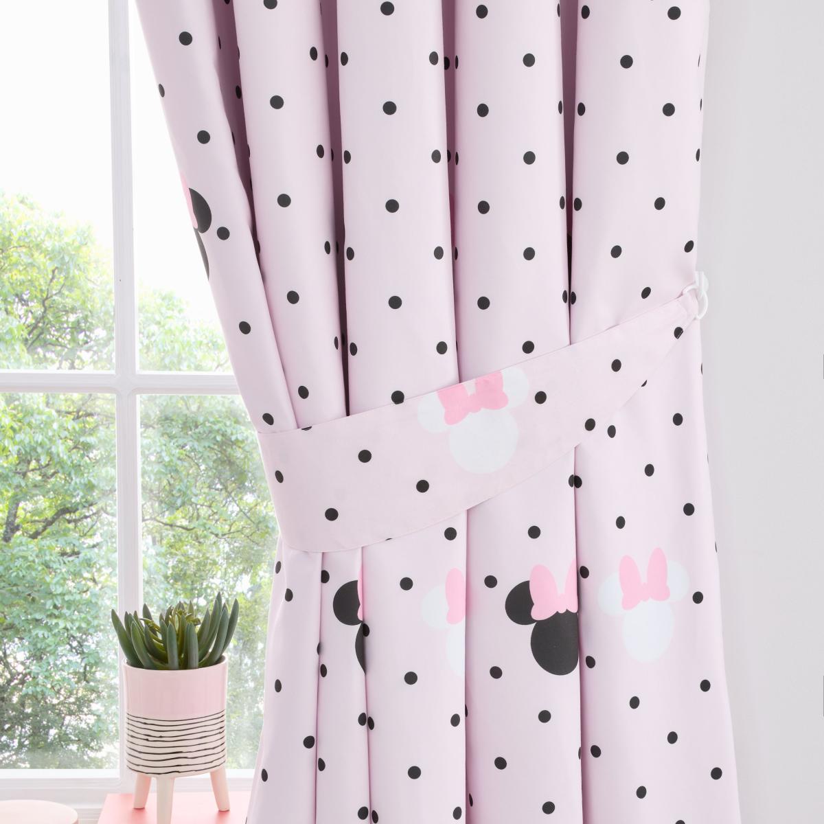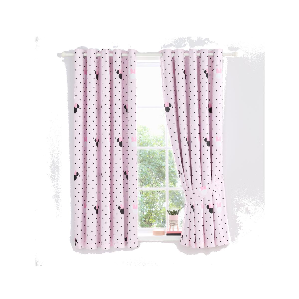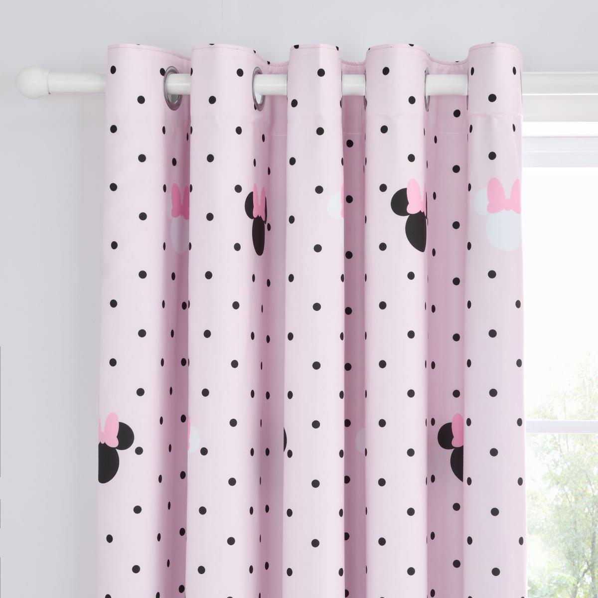* Includes 2 x curtain panels* Disney Minnie Pink Design* Blackout Lining* Eyelet Curtain* Matching items available These Minnie Eyelet Curtains bring a pop of pink to your child's room! Featuring the iconic Minnie Mouse, they have a blackout lining to help your child sleep soundly. The eyelet design makes them easy to install, and they can be paired with other matching items for a coordinated style. This collection is verified by OEKO-TEX and independently tested for harmful substances as well as manufactured using sustainable processes under socially responsible working conditions.