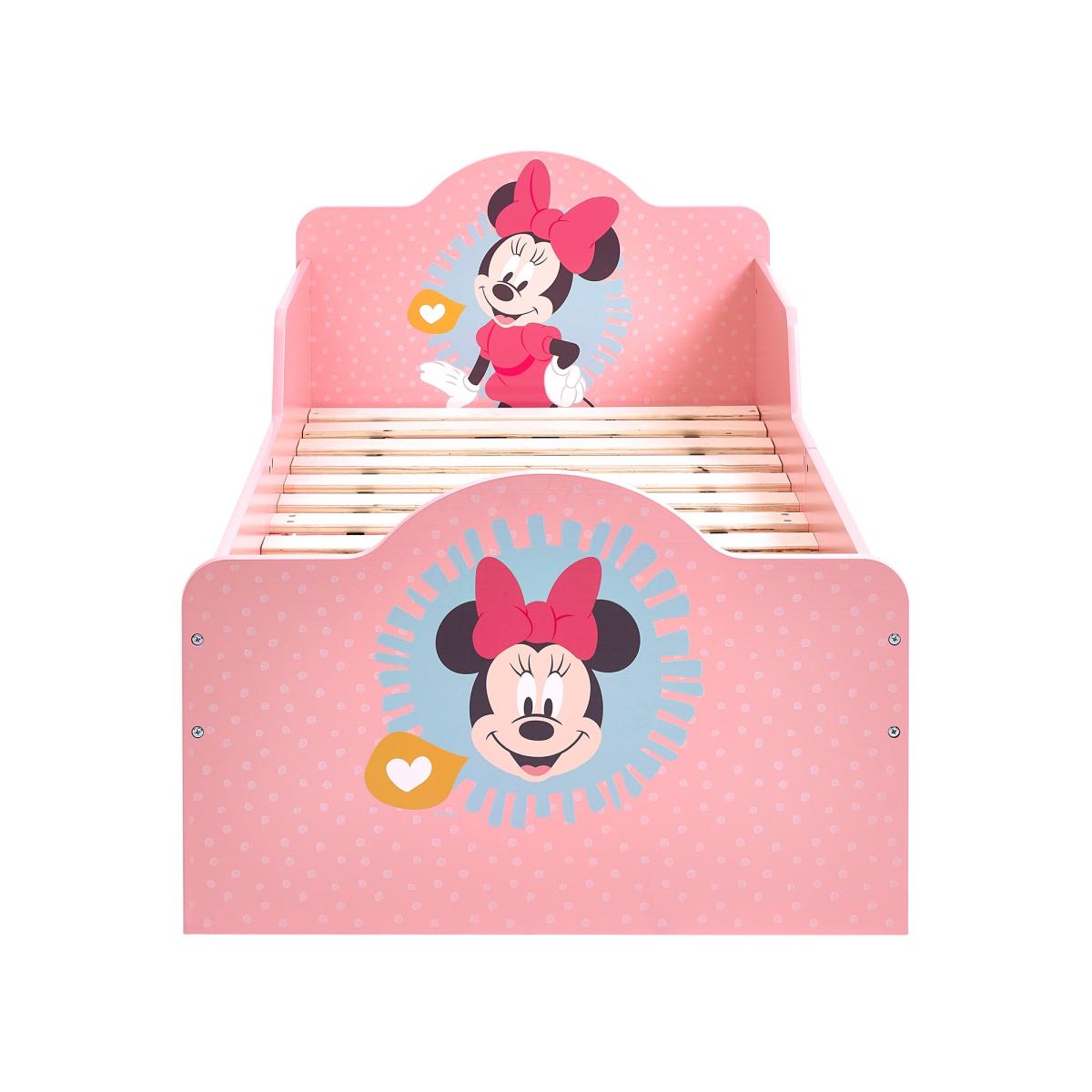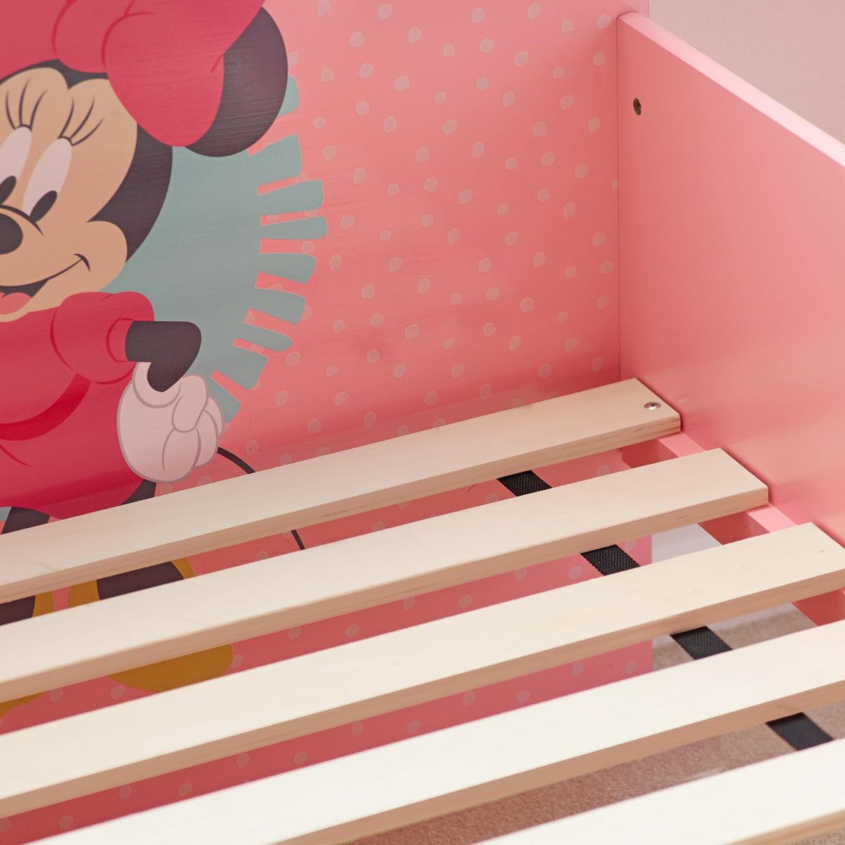 * Toddler Bed* Mattress not included Designed with the charm of everyone's favourite Disney character, Minnie Mouse, this bed brings a touch of magic to bedtime. Crafted with care and attention to detail, it features adorable Minnie Mouse graphics and a vibrant pink finish that will delight any young fan. The low height and sturdy build ensure safety and ease of access for toddlers transitioning from a crib to a bed.