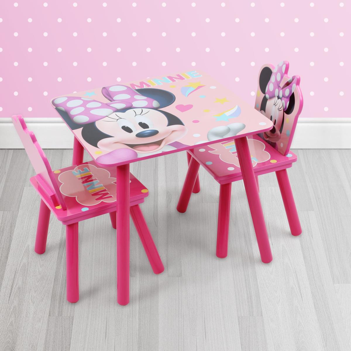 Your little one will go wild for this Disney Minnie Mouse Table 2 Chair Set - Covered in colourful graphics of Minnie, this fun play table is ideal for colouring, homework and snack time. Simple assembly, all fixings supplied with step by step instructions. The table and chairs set include one table and two chairs. Perfect for display in any playroom or bedroom.