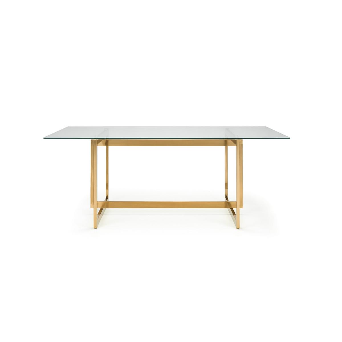 Gatsby called - he wants his dining table back. Dine in style and class with this Minori dining table that's sure to wow you and your guests day in and day out. Tempered glass and sturdy steel make for a durable construction sure to stay with you for years, so you don't have to worry about having to part with such a stylish piece!.
