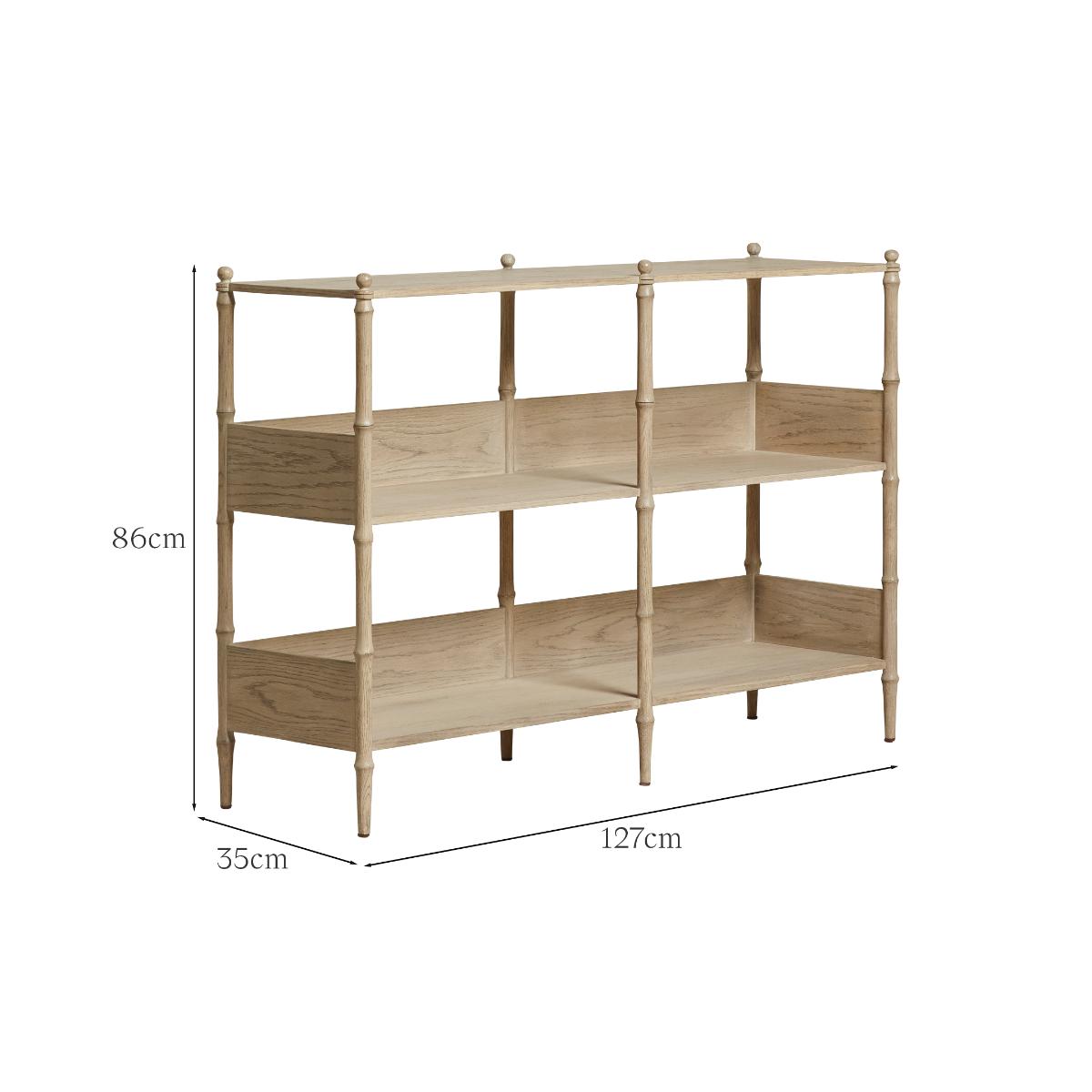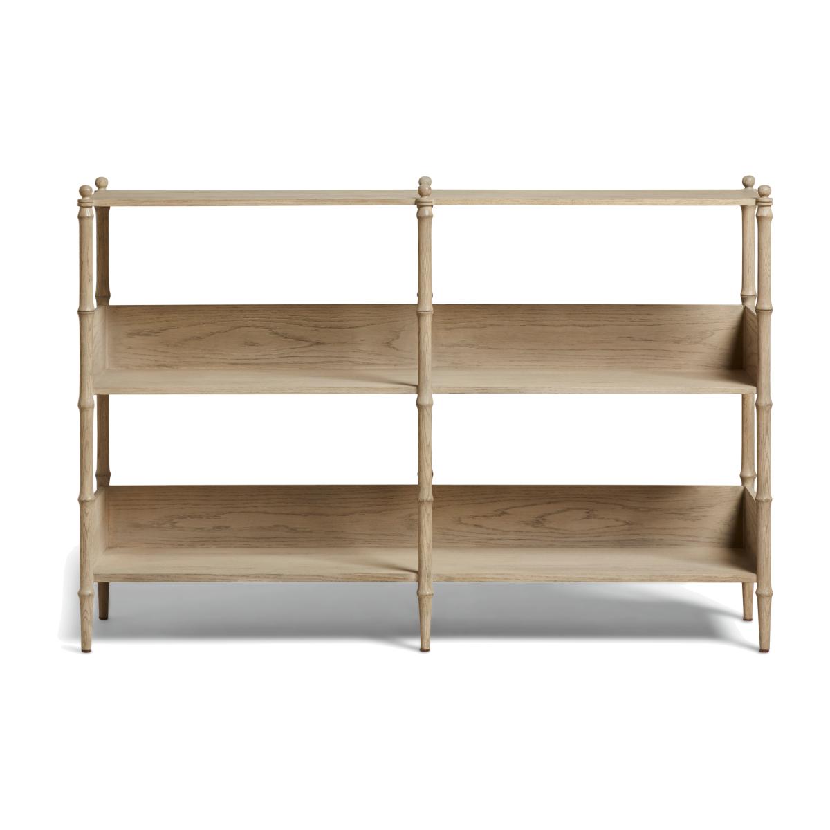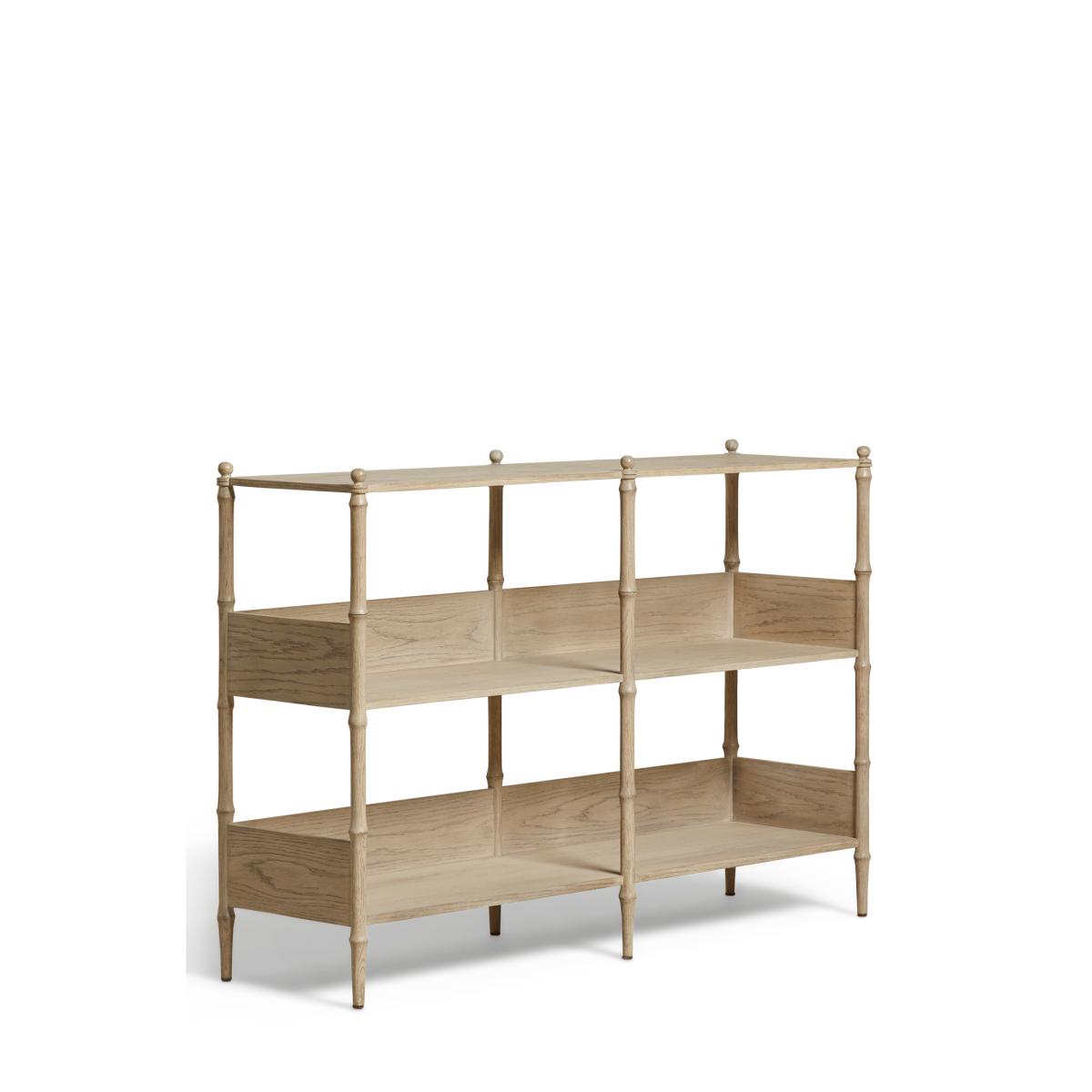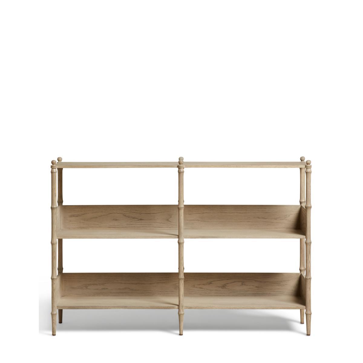 In the midst of the Minshan mountains, wild pandas can be found munching away on their favourite delicacy: bamboo. Our console table has been so-named due to its bamboo-inspired frame with the turned struts sculpted to hold a delicate appearance with visible but smooth joins and topped with decorative finials. It's made from solid oak with a washed finish that the grain is visible through and features veneer shelves for displaying objects and books alike.