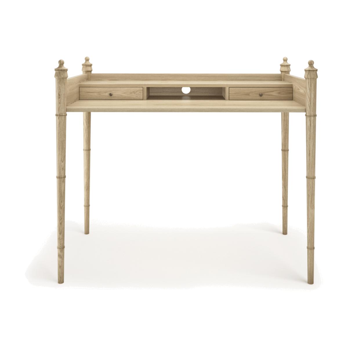 Pleasingly simple and perfectly practical, this refined piece is crafted from solid oak with a natural, raw-looking finish. There's nothing fussy about it; the pretty finials finish off the tapered legs with their subtle hand-carved details. Its neat shape would suit a contemporary or traditional setting, and its useful features make it a great option for working from home. Due to the natural materials used, each piece will have individual characteristics. Minshan Desk with Drawers - Bleached Oak