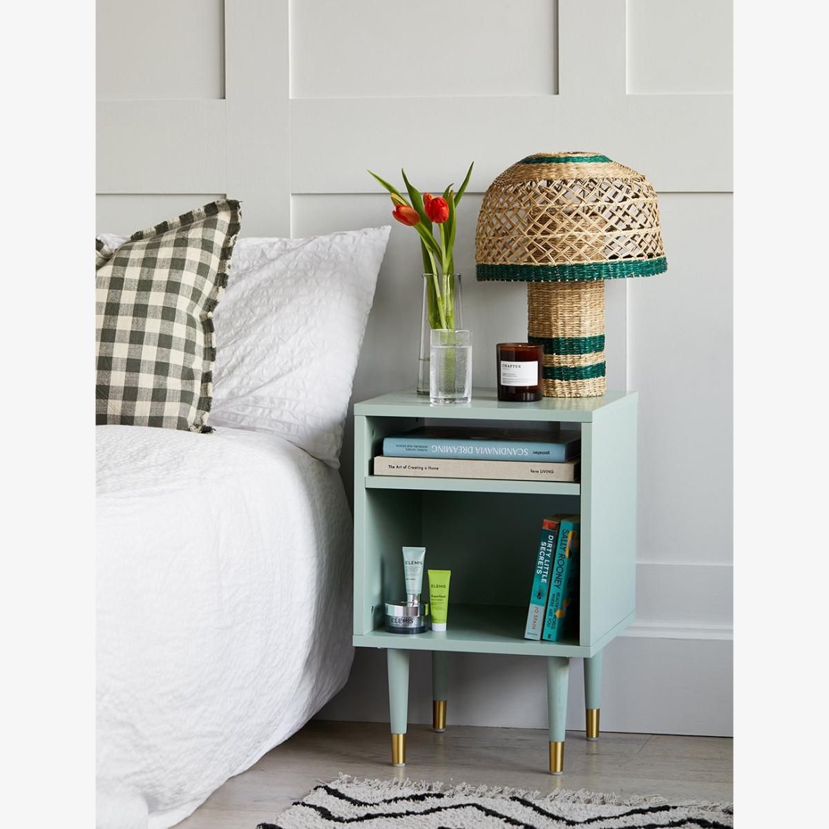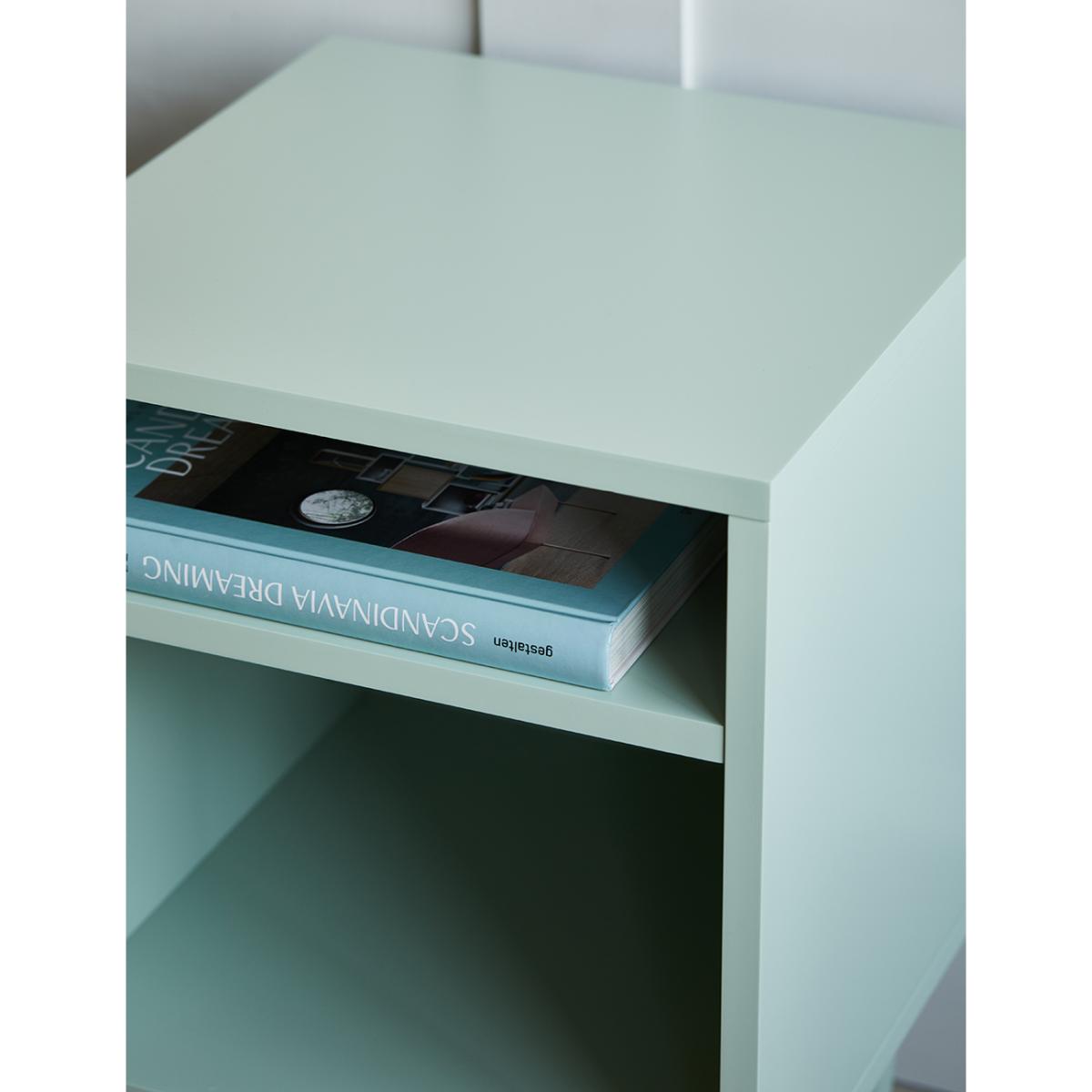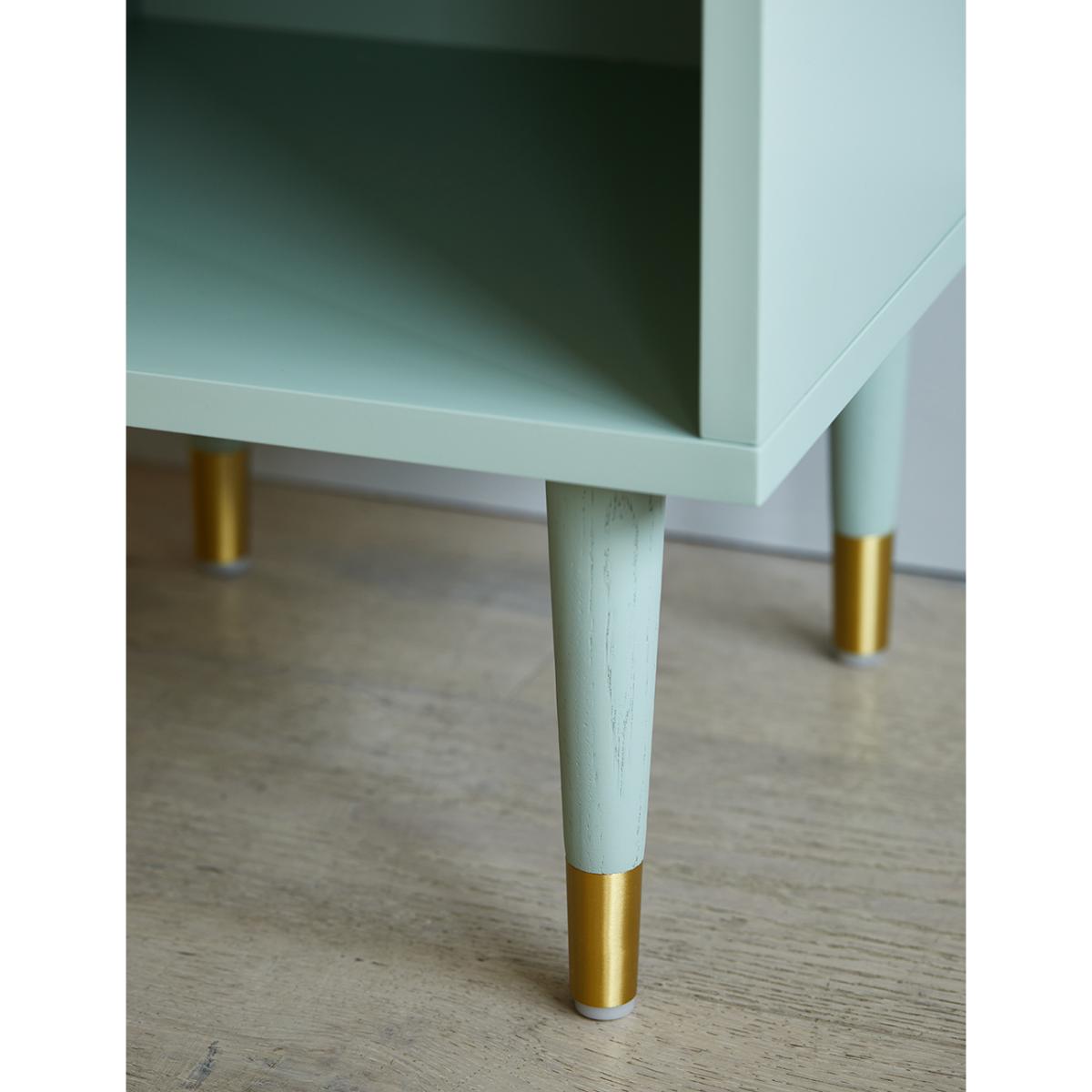 Add trending mint green hues to your bedroom with our Open Design Bedside Table. Boasting plenty of storage space with two open shelves, giving you lots of room to style and store all your important belongings. The tall legs add a spacious feel to the floor, and the brass accents on the solid oak legs beautifully compliment the mint green shade. A stylish and practical nightstand that injects colour into the room. Also available in 4 other colours to perfectly suit your interior.