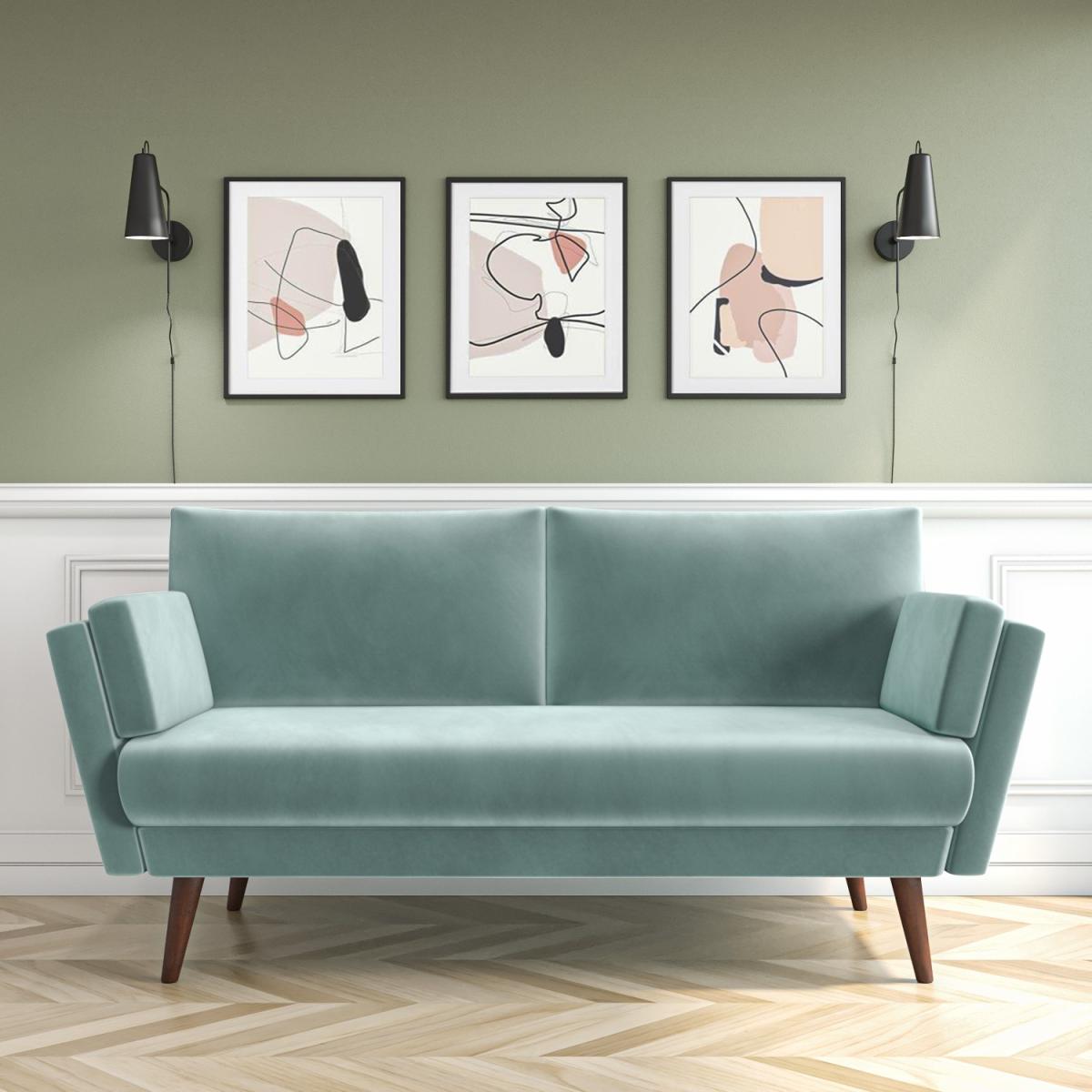 The mint green velvet 2 seater is a versatile piece that brings a fresh, contemporary touch to both modern and vintage-inspired interiors. I love how the velvet finish adds a touch of luxe without feeling overly formal, making it suitable for cosy living rooms or even trendy workspaces. It pairs beautifully with neutral palettes to create a calming vibe or can be combined with rich jewel tones for a more opulent look. For styling tips, consider adding textured cushions in contrasting colours or subtle patterns to enhance its tactile appeal. Position it against a plain wall and complement with understated art or modern lighting to let the colour and luxurious fabric stand out.
