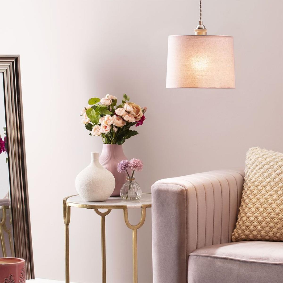 The 25cm Linen Shade brings a pastel touch to your home’s interior lighting arrangements with a beautiful, soft Pink finish, creating a wonderfully soft vibe in any room. Diffusing the light into a warm glow, the linen shade creates a soothing, relaxed atmosphere in your room. The easy to fit functionality makes it even easier to add to your home, able to be attached to any pre-existing fitting.