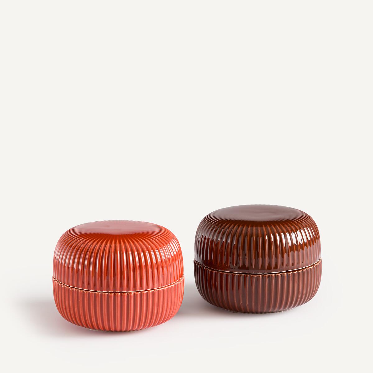 In a terracotta colour, the Mira candle is presented in a ribbed ceramic dish. Its fragrance diffuses an enveloping, gourmand warmth. Warm and refined. Product Details • Scented wax • Cotton wick • Grooved ceramic dish. Dimensions • Diameter: 12cm • Height: 9cm/3.5" • MADE IN PORTUGAL.Dimensions and weight of parcel1 parcel • W20 x H18 x D19cm, 1kg