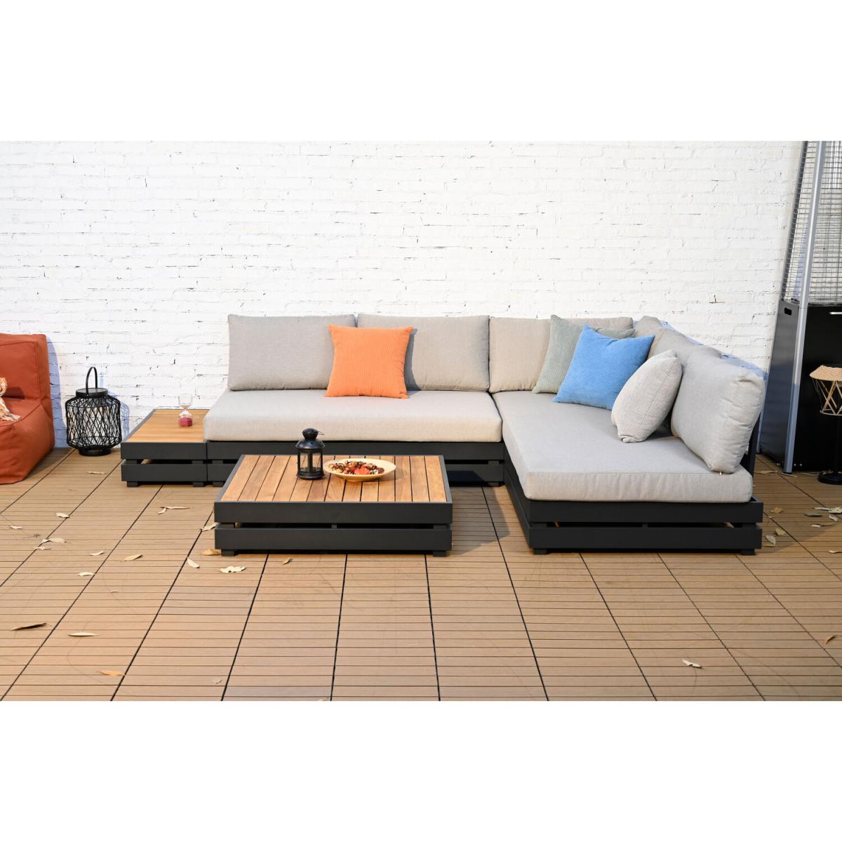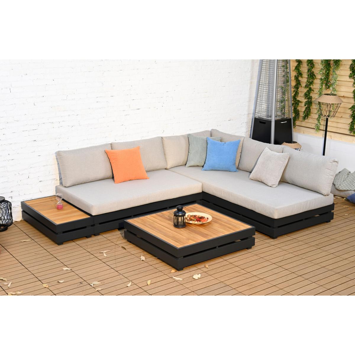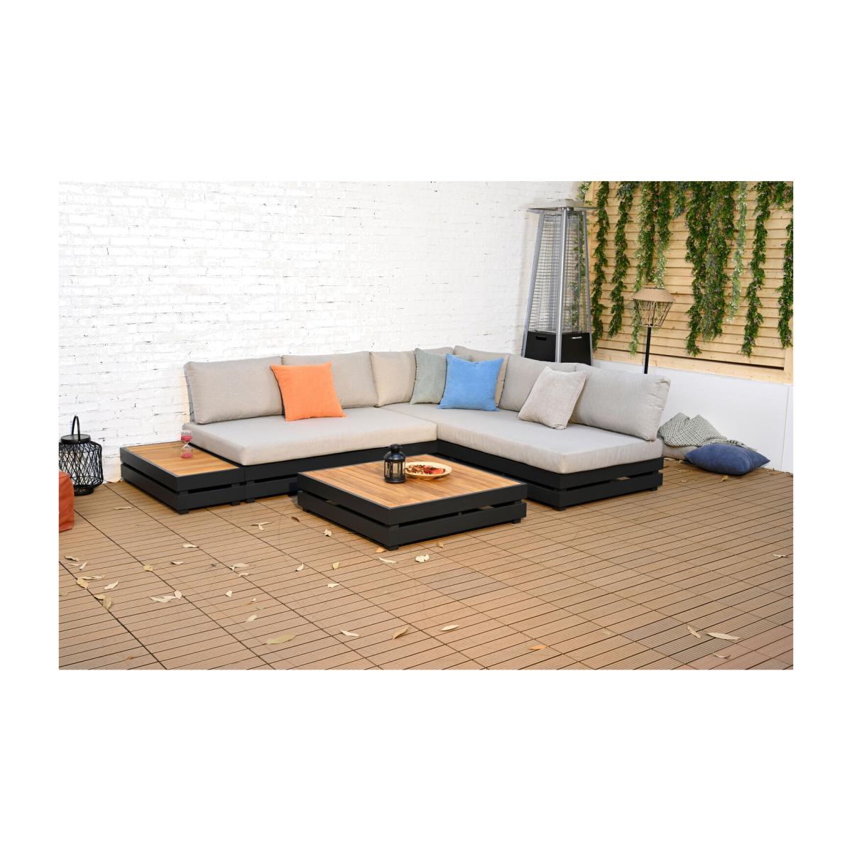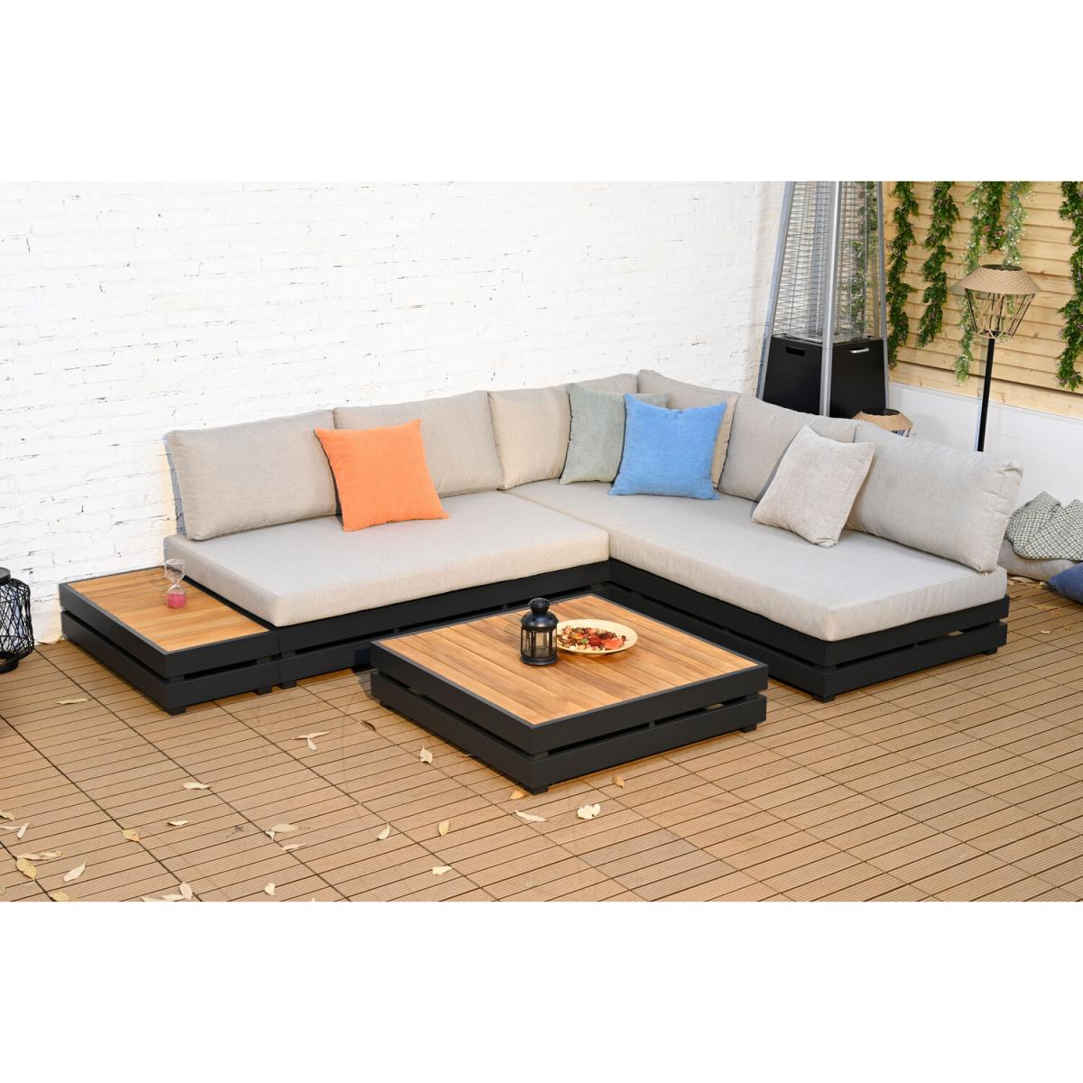 The Mira Sofa Set is an opulent patio furniture set that would be a great addition to any garden, deck or patio. It comprises of a spacious corner sofa unit, which is perfect for lounging and soaking up the sun, and a coffee table that is an ideal spot to keep your drinks, snacks and other essentials. The sofa is designed to provide a comfortable sunbathing experience, featuring thick and plush cushions for the back and seat. This set is crafted using high-quality, weather-resistant materials and boasts an aluminium frame, making it strong, durable and long-lasting. Excellent for BBQs, family get-togethers or catching up with friends, this sofa set is guaranteed to impress.