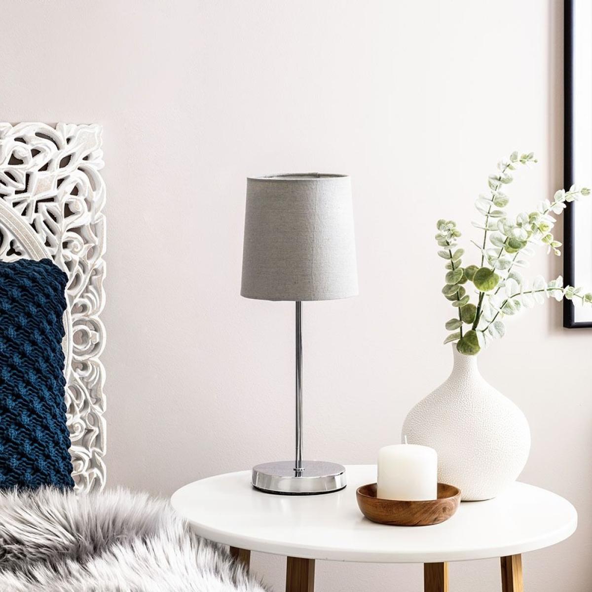Our Mira Touch Stick Table Lamp is the perfect lighting addition for your home, providing any room with an understated, modern look with some tasteful, stylish simplicity. The chrome disk base features a unique, touch activated sensor from which you can easily turn the light on and off, making lighting your home both more efficient and more comfortable, ensuring you never have to reach for a switch again. The tall, slim stand holds a simplistic, grey shade, perfect for any home with a modern and versatile look.