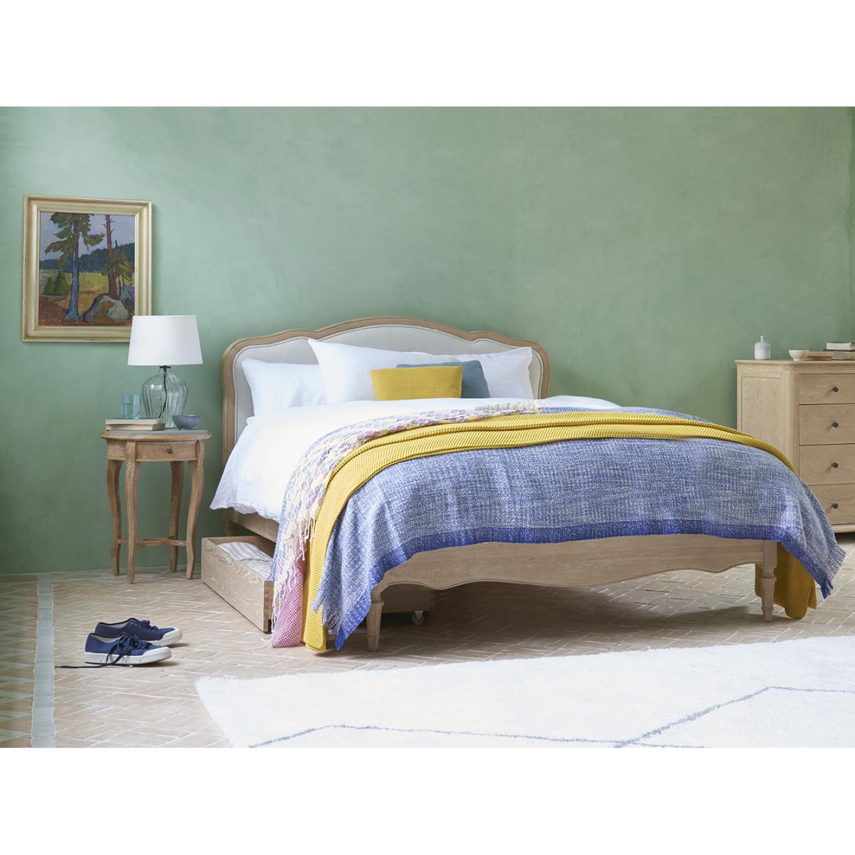 I love this bed frame for its elegant yet understated style, making it versatile across various interior aesthetics. Its soft curves and muted colour palette work perfectly in both classic and contemporary bedrooms. It’s particularly suited to light, airy spaces, but can also bring a touch of sophistication to more eclectic or vintage-inspired schemes. For styling, consider contrasting it with textured bedding and layered pillows to enhance its gentle silhouette. Adding a cosy rug underneath or alongside can tie the look together, creating a welcoming and restful retreat. Its restrained elegance allows for flexibility in accessorising, whether you choose minimal, modern décor or more layered, vintage touches.