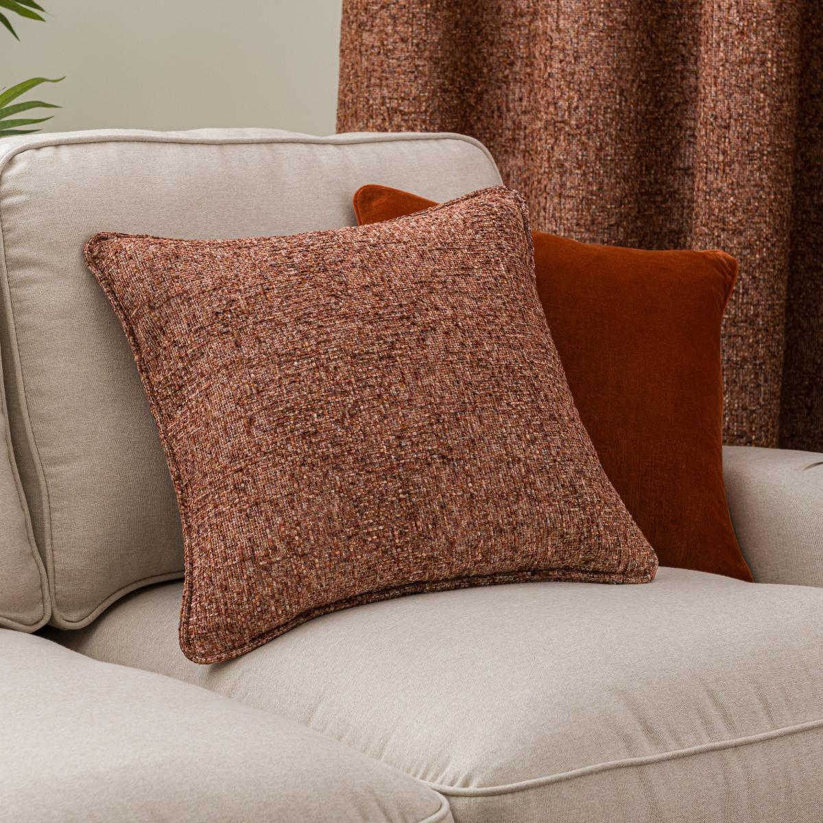 * Soft, multi-tonal, textured chenille cushion* Made from 100% recycled Polyester* Plump inner* Removable cover* Coordinating curtains available Style your favourite seat with our gorgeous Mirabelle cushion. With its stunning multi-tonal texture and sumptuously soft chenille weave, you'll find it difficult to keep your hands off. Made from irresistibly soft 100% recycled polyester, it comes filled with a plump feather inner for your comfort.