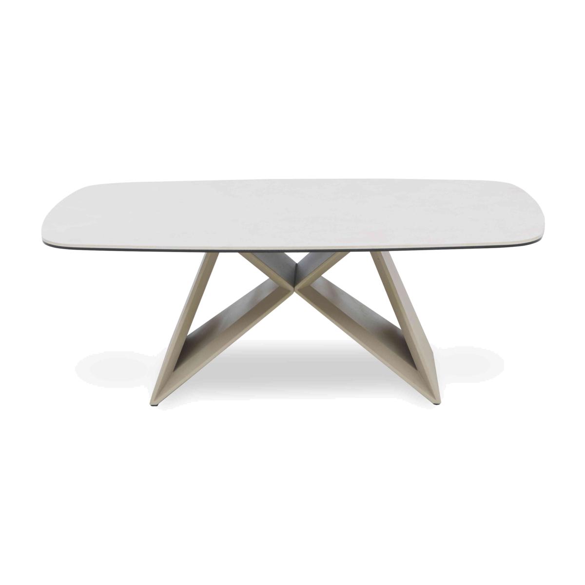 It’s not a Mirage. Our new Mirage collection puts fabulous contemporary furniture most definitely within reach. The collection’s statement boat-shaped extending dining tables display architectural bases and high-gloss ceramic tops with travertine marble-inspired patterning. Dining chairs have auto-return swivel bases and pocket sprung seats for dining comfort like never before. And the range’s storage and occasional pieces – sideboards, a coffee table, a TV unit and more – make it easy to bring Mirage’s high-end look into living spaces as well as dining rooms. The Mirage range is exclusively available at Furniture Village. Is there a coffee table as eye-catching as this one? With its glossy ceramic top and architectural-inspired base, it really is one of a kind. Exclusive. Why you'll love it Stylish angles, sleek finishes and an on-trend, tone-on-tone colour palette. Stunning high-gloss ceramic top with a travertine marble-inspired pattern. Eye-catching, architectural base with a modern powder-coated finish. Ceramic is heatproof, scratch-resistant and chip-resistant. Bonded to tempered glass, the ceramic top is extremely durable. The Mirage range is only available at Furniture Village. This coffee table is part of our Mirage range. What you need to know Top is made of 6 mm ceramic bonded to 6 mm tempered glass. We recommend using coasters and placemats at all times. Easy to care for. Simply wipe with a clean damp cloth and dry with a soft duster. Do not use abrasive cleaning products.