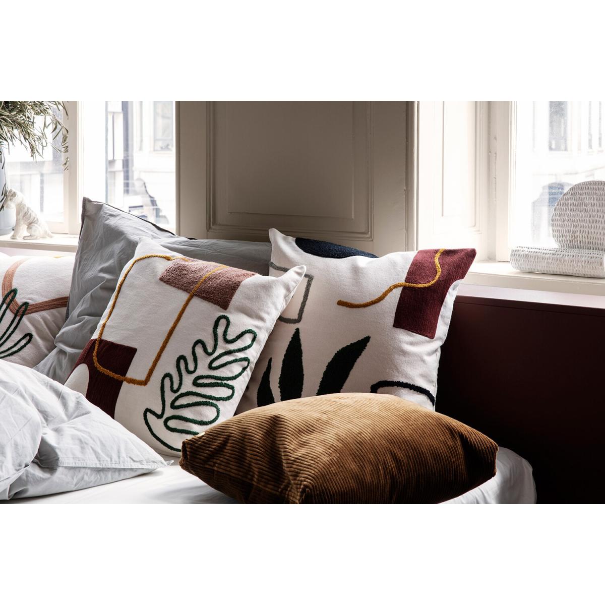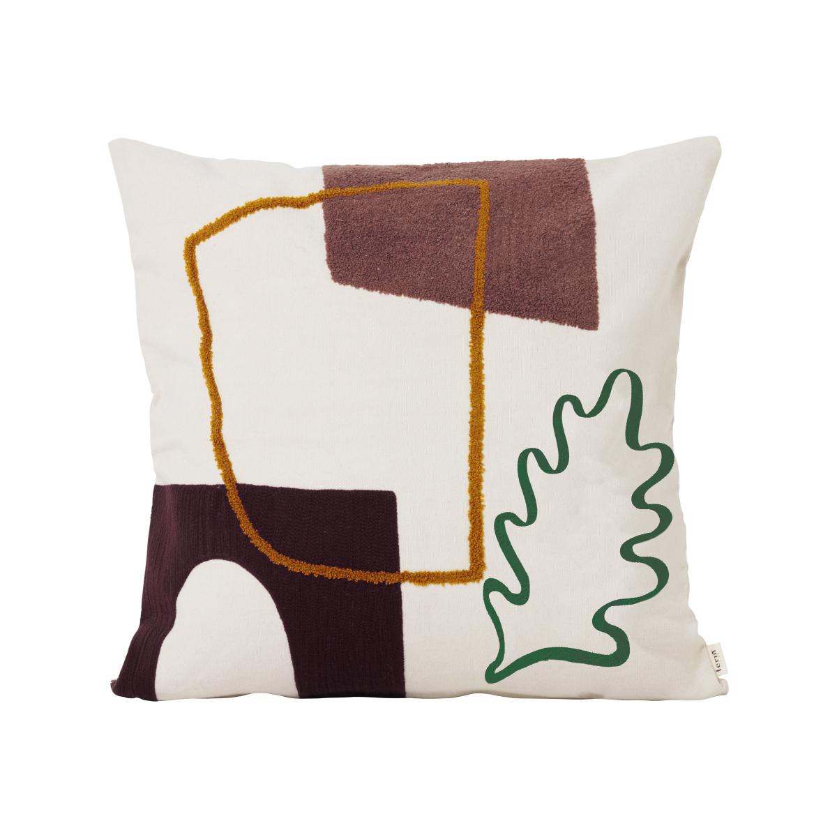Mirage pillow 50x50 from Ferm Living has a pattern that's inspired by a desert landscape and oases with objects from the scene given beautiful abstract shapes. This pillow works well on a bed as well as a sofa or your favourite armchair.