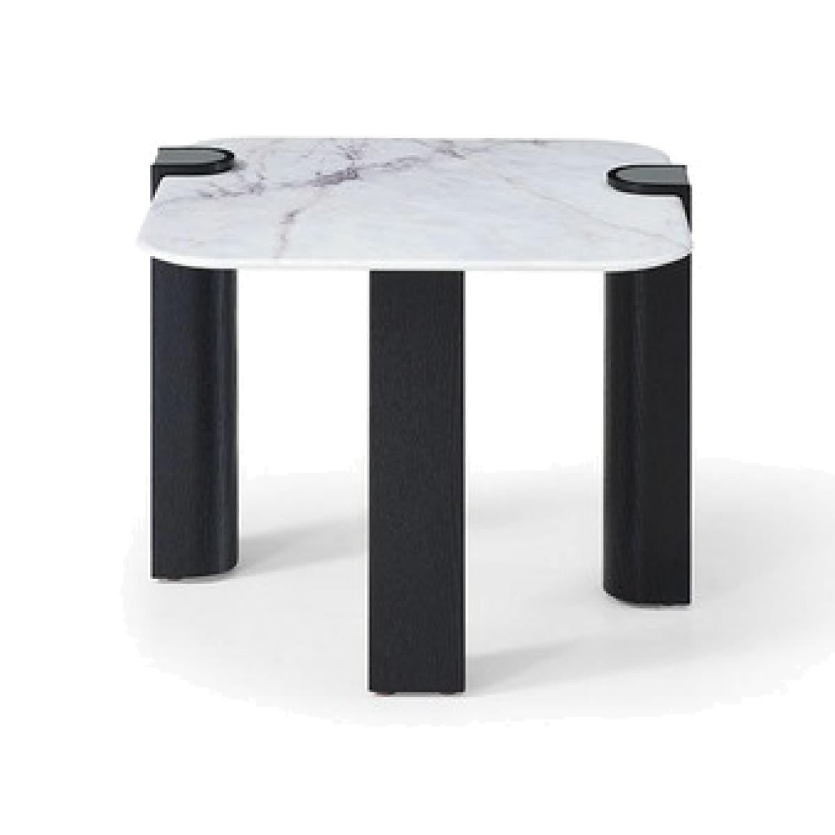 Part of the beautifully curated Mirage Collection, the Mirage Side Table offers a unique blend of materials and sculptural form. Featuring an engineered white marble top, this elegant piece delivers the luxurious look of natural stone with the added benefit of durability and ease of care. The top is supported by sculpted Ash wood legs, carefully crafted with a distinctive three-leg offset design that adds visual intrigue and stability. A grey leather inlay introduces a subtle yet luxurious contrast, enriching the tactile appeal and showcasing the collection’s attention to detail. Perfect as a standalone accent piece or as part of a coordinated set, the Mirage Side Table is a refined addition to any modern or classic interior. Key Features: Engineered white marble top – elegant and practical Unique three-leg offset design for a sculptural silhouette Sculpted Ash legs for warmth and natural character Grey leather inlay adds texture and sophistication Ideal as an occasional table or statement accent in living areas Dimensions Width 60cm Depth 60cm Height 50cm. All screens vary in colour reproduction and whilst every effort has been made to display the colour as accurately as possible it is for guidance only.