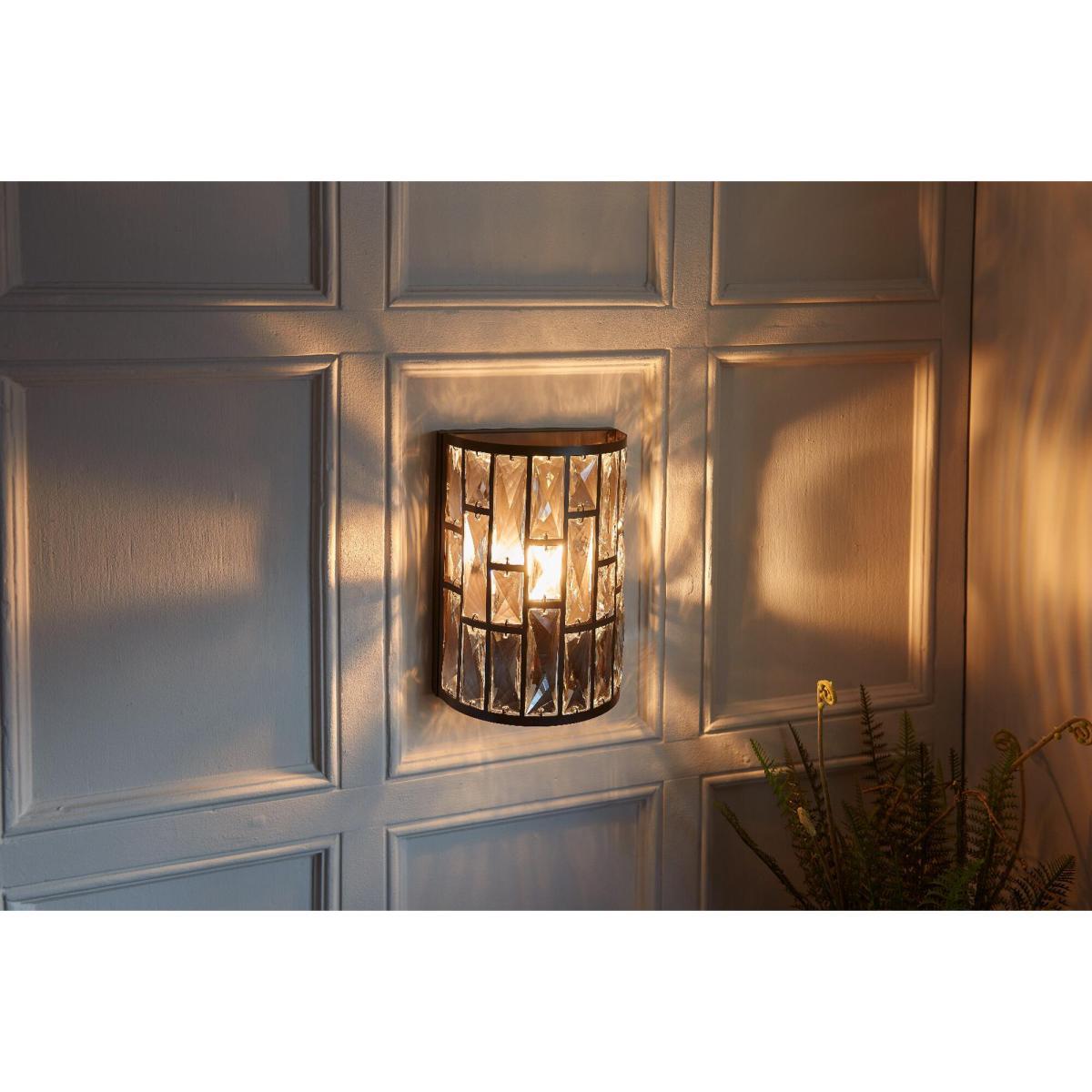 The Miranda wall light is an ideal design for those interiors that keep things classically with hints of opulence and luxury. Its tile-inspired design combines a steel frame with a lavish Dark Bronze finish and delicate, faceted glass baguettes. Once lit, the Miranda displays incredibly beautiful contrasts that will steal the show, spreading marvelous light reflections all over the room and creating a whimsical atmosphere. The Miranda is the go-to accent light to complete the look in neutral schemes and traditional interiors.