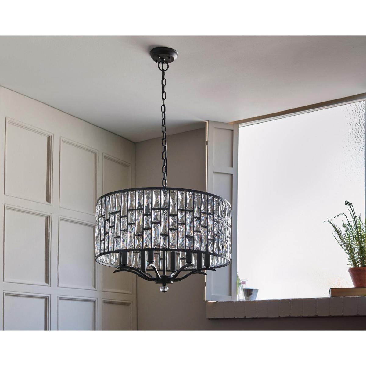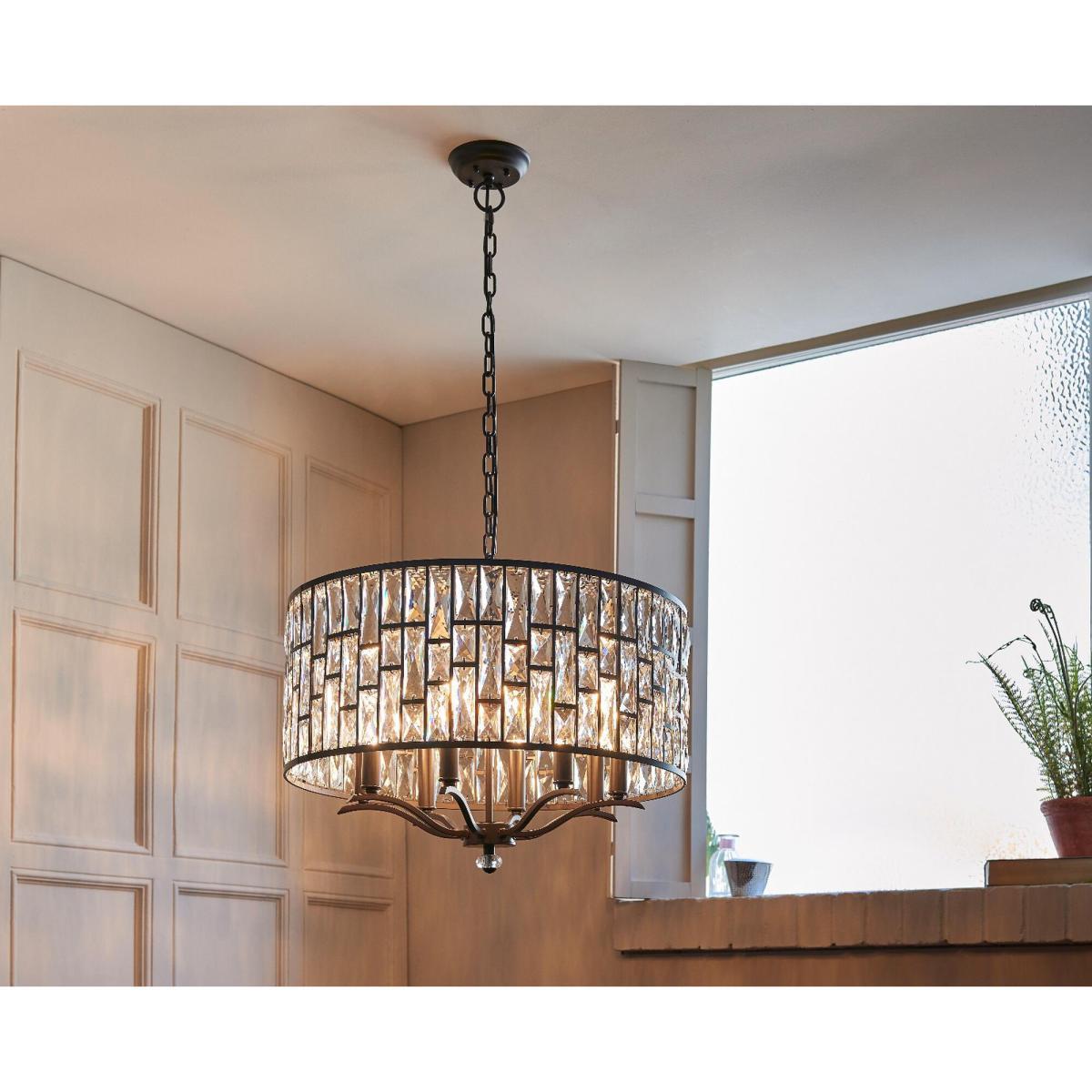 The Miranda pendant is an ideal design for those interiors that keep things classically with hints of opulence and luxury. Its tile-inspired design combines a steel frame with a lavish Dark Bronze finish and delicate, faceted glass baguettes. Once lit, the Miranda displays incredibly beautiful contrasts that will steal the show, spreading marvellous light reflections all over the room and creating a whimsical atmosphere. The Miranda is the go-to accent light to complete the look in neutral schemes and traditional interiors.