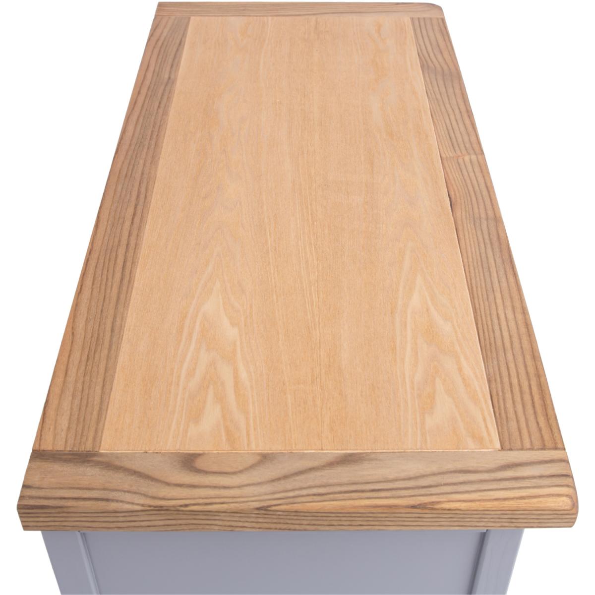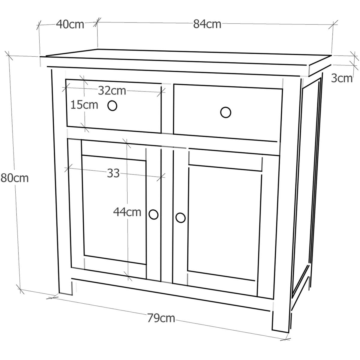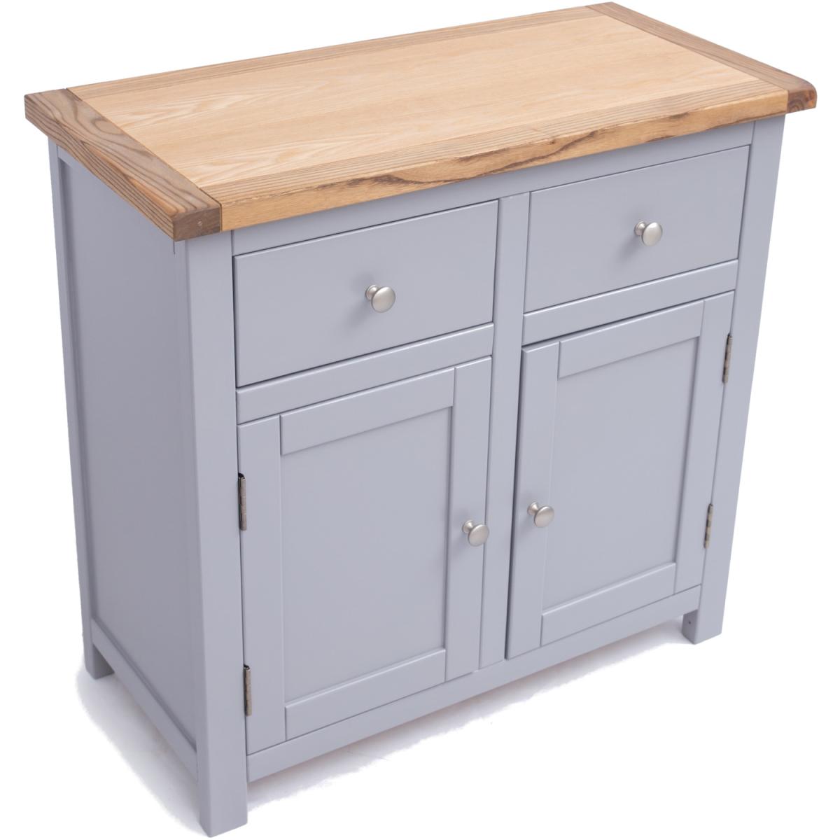 Our Mirano collection has a simple but pleasing design and is produced by our skilled craftsmen to the highest standards using responsibly sourced wood and veneers. All tops are made using a combination of hardwood and ash veneer and are carefully hand waxed giving it a great look. The body is finished with a high quality eco-friendly water base paint on a grey colour. A compact 2 door 2 drawer sideboard ideal for your kitchen, dining room or lounge. The two doors conceal a large cupboard space for storing crockery, bottles or glassware and there is a shelf to help you organise your contents too. Above this there are two drawers for cutlery, napkins, place mats or maybe even keeping essential paperwork to hand. These attributes combined with a simple construction for easy assembly makes it a great value product to be taken home today.