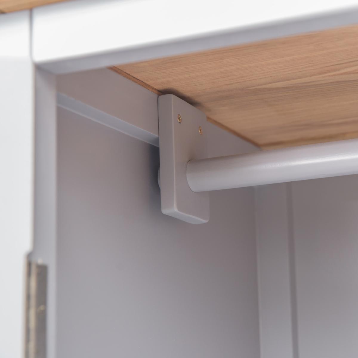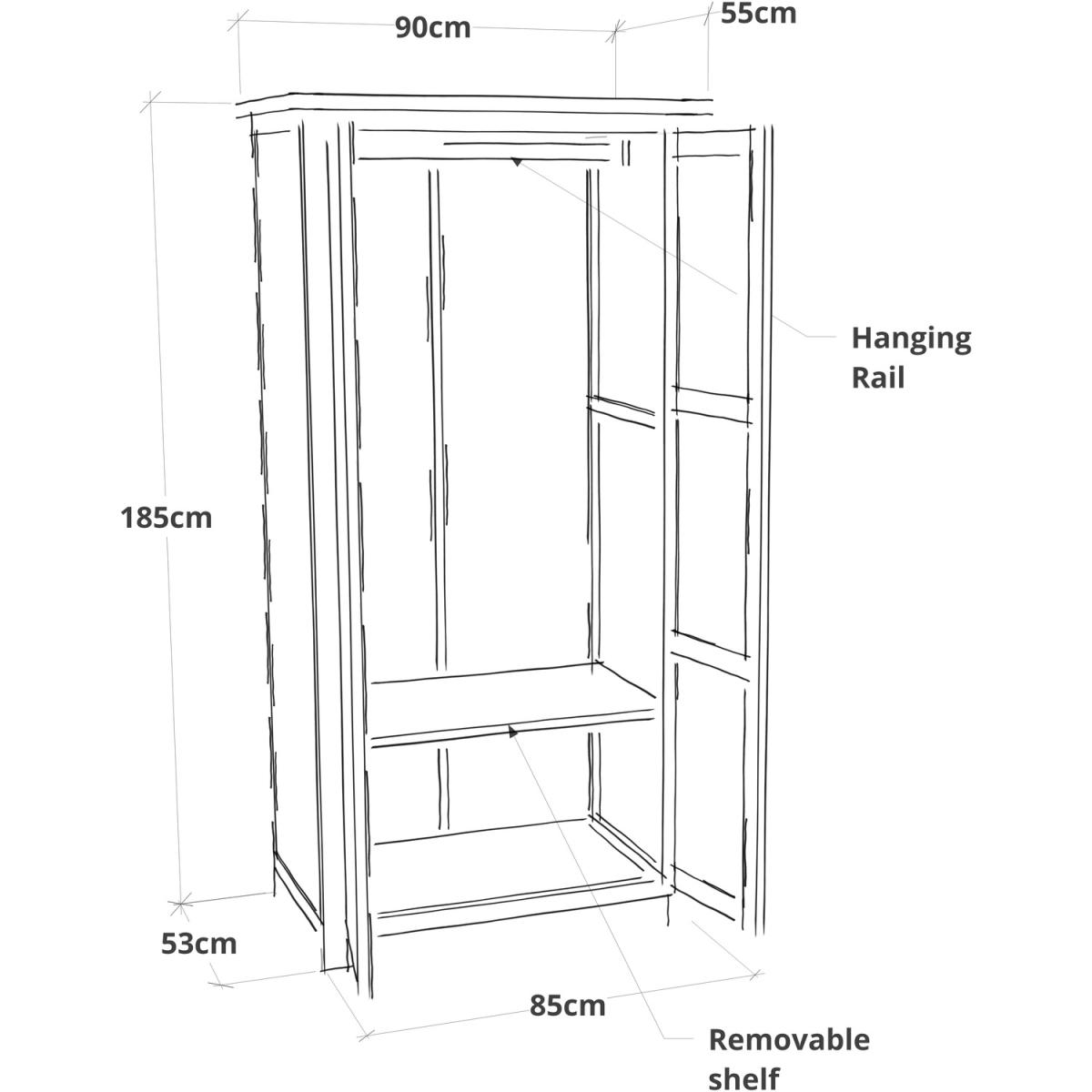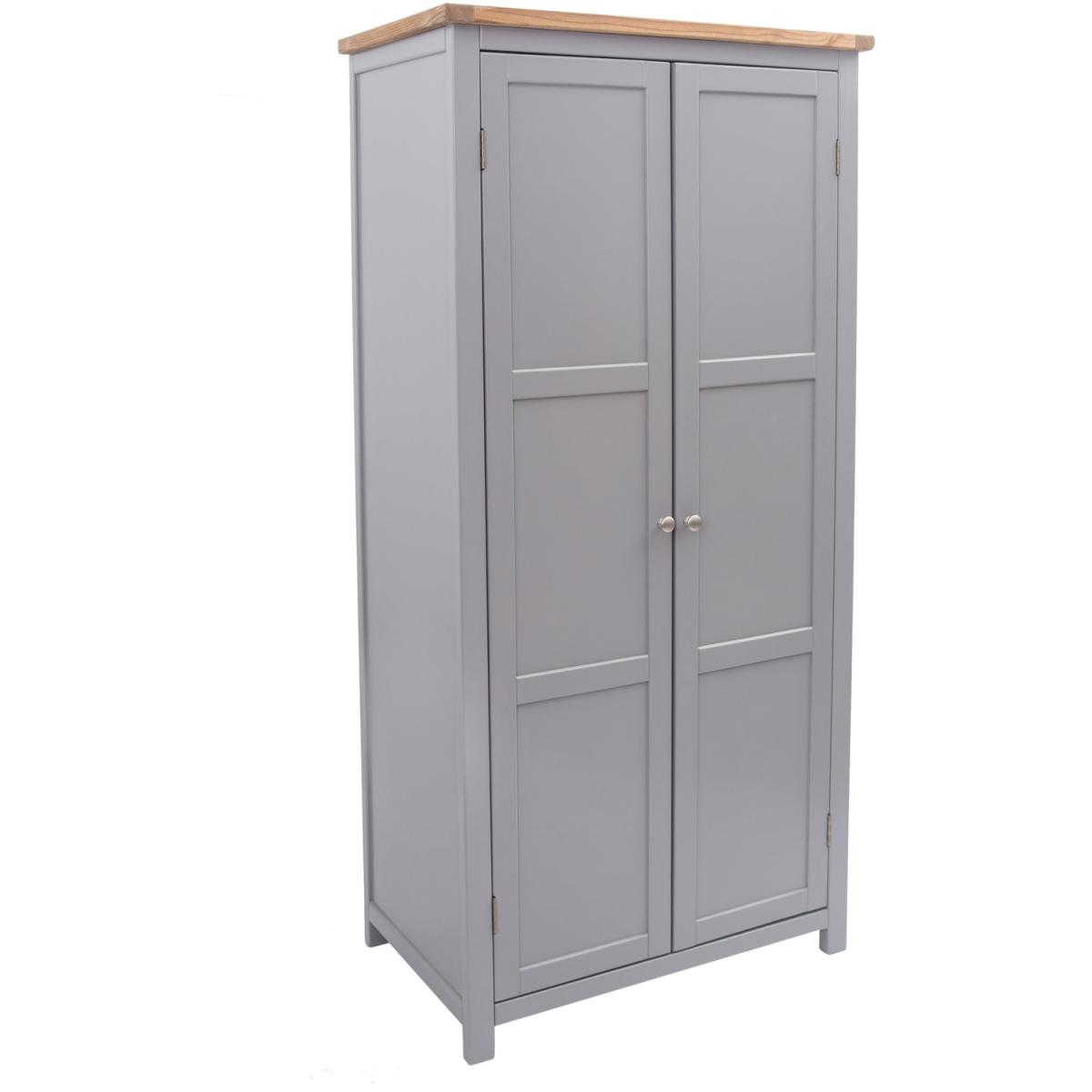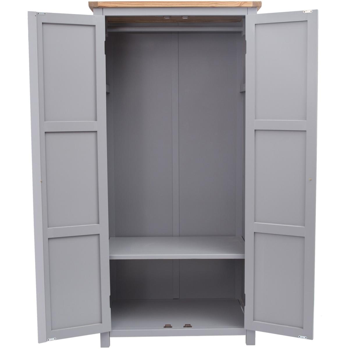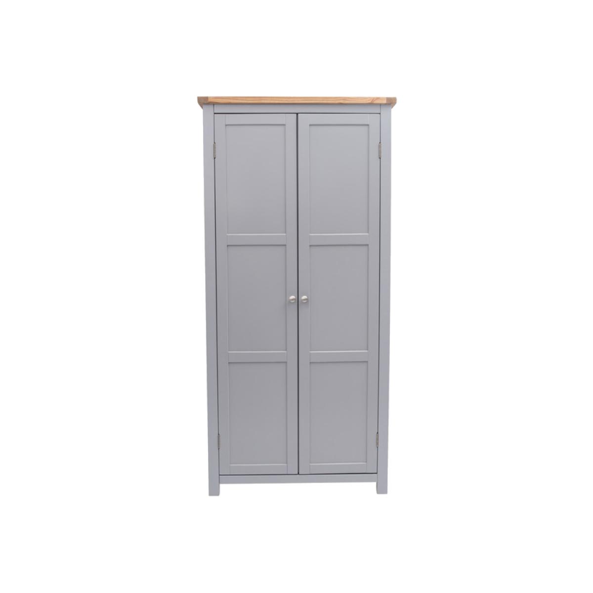 Our Mirano collection has a simple but pleasing design and is produced by our skilled craftsmen to the highest standards using responsibly sourced wood and veneers. All tops are made using a combination of hardwood and ash veneer and are carefully hand-waxed giving it a great look. The body is finished with a high-quality eco-friendly water base paint on a grey colour. This two-door wardrobe can house your clothes in a variety of ways. The rail at the top allows you to hang your clothes freely without creasing, there is a shelf in the lower part of the robe but this can be removed if you wish to have full hanging space. If you keep the shelf in it creates a separate storage area below for folded clothes or shoes or indeed for spare bedding, also you can use the shelf itself as further storage. These attributes combined with a simple construction for easy assembly make it a great value product to be taken home today.