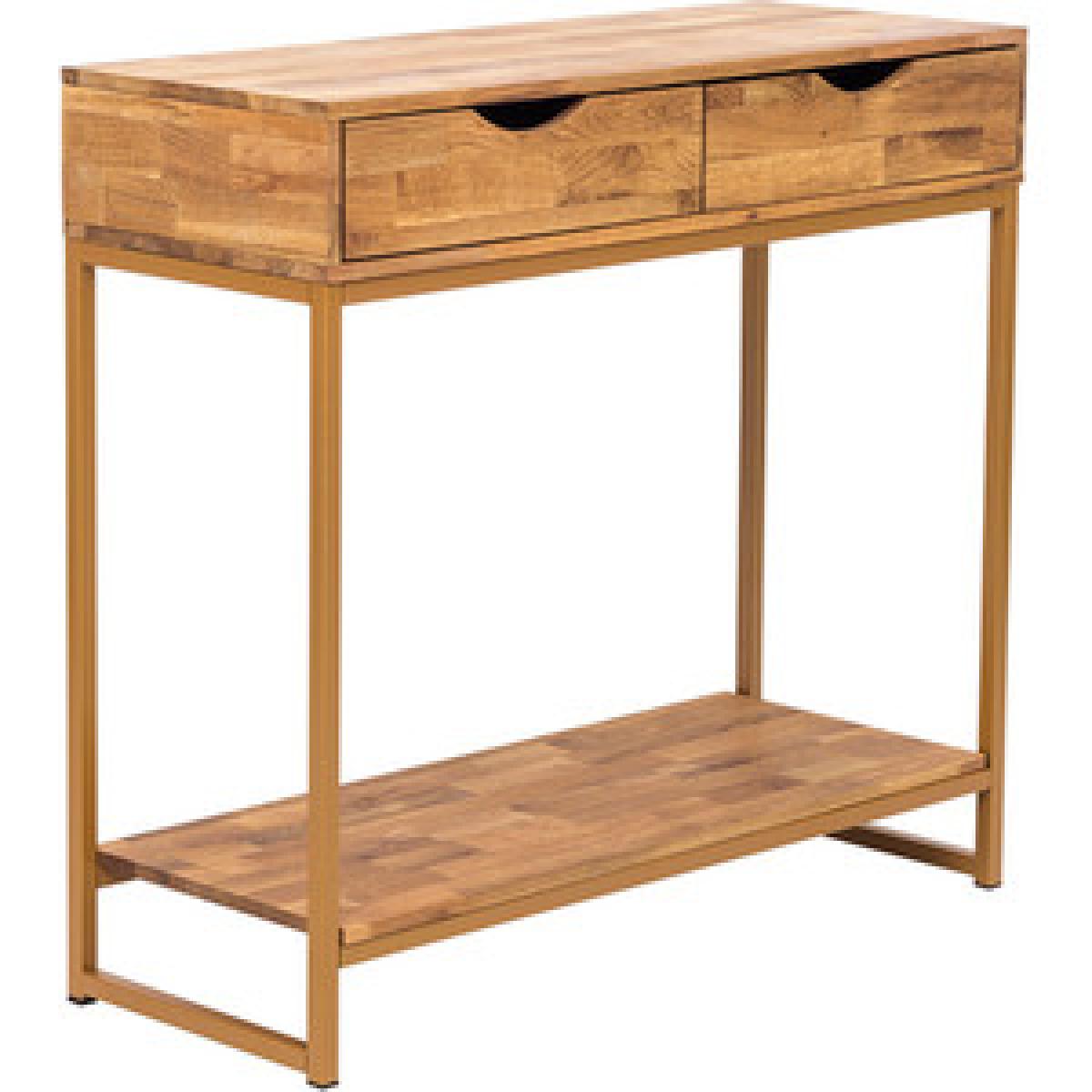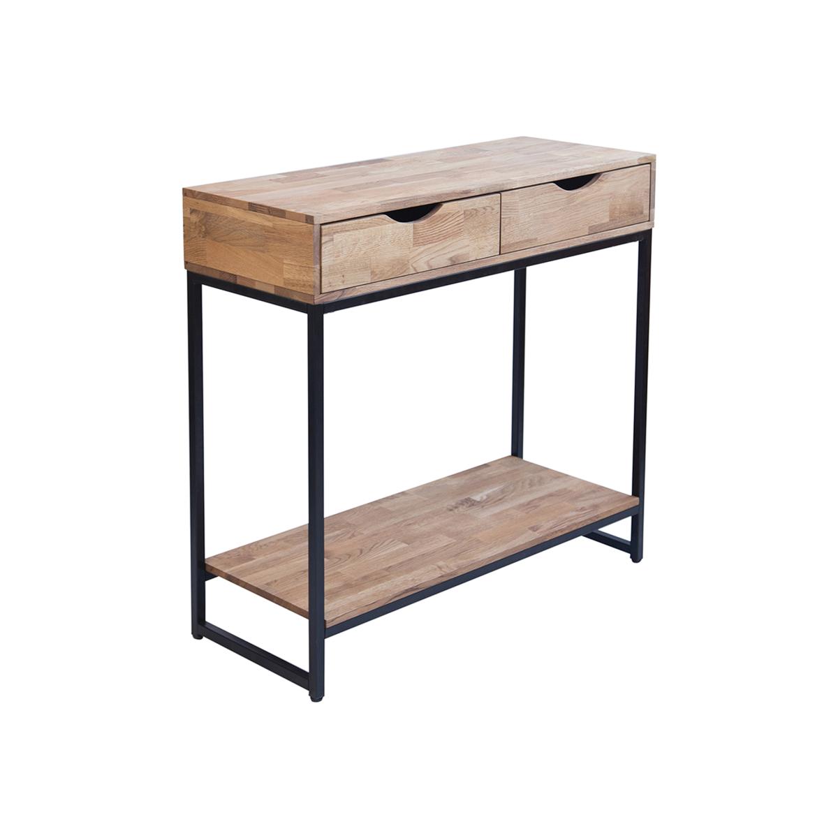 I really like this slim black-frame console with its warm oak surfaces for its clean lines and versatile look. It suits industrial, Scandi or modern-rustic schemes and won’t overwhelm a narrow hallway or living-room wall. Styling-wise, balance its linear shape with a round mirror or artwork above and a pair of small table lamps or matching vases. Use the two drawers for keys and small essentials, and tuck a woven basket on the lower shelf to corral shoes or magazines.