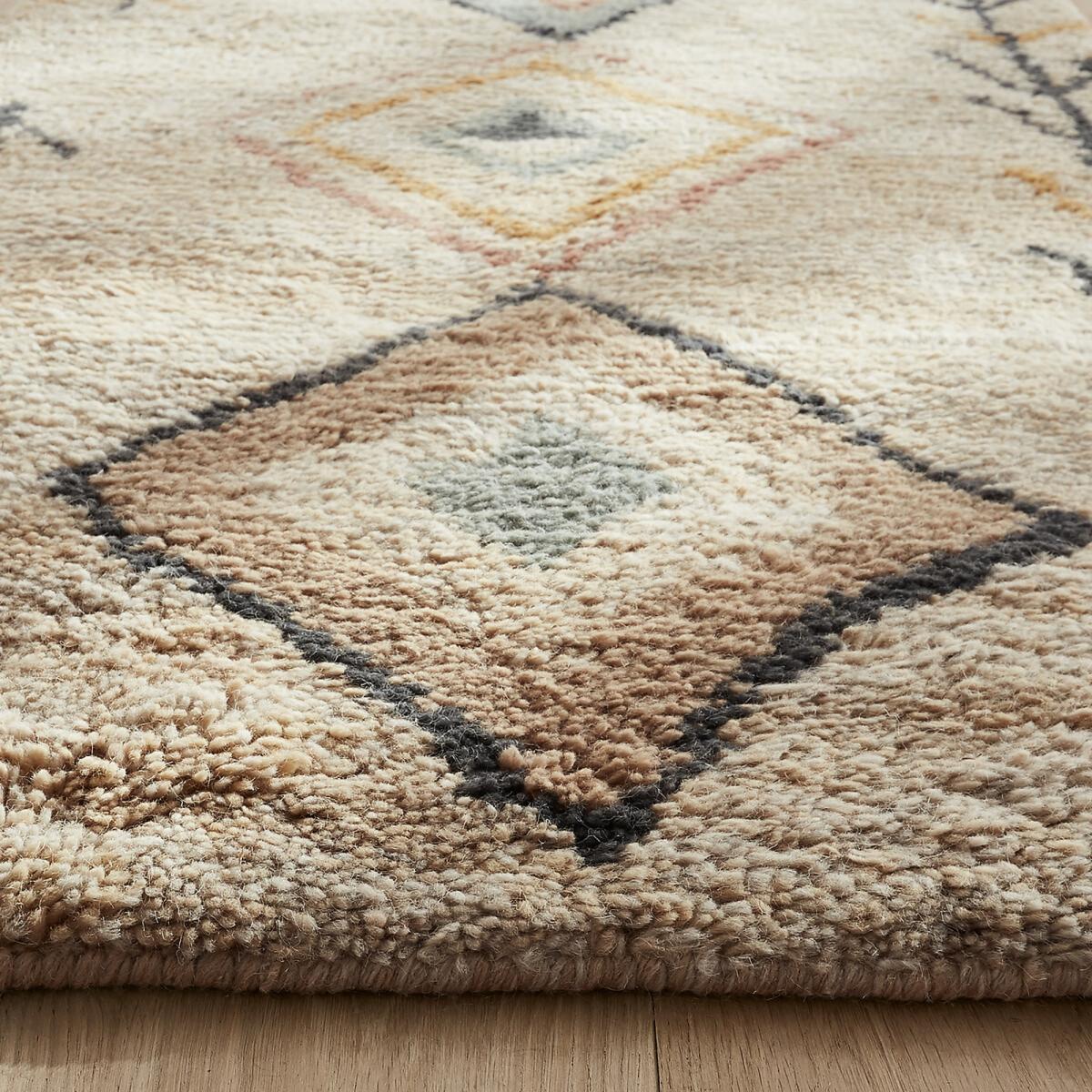 This rug has original and colourful patterns inspired by Berber rugs. Made with high quality wool which is dense and thick, this rug is charming with its motifs and subtle tones.