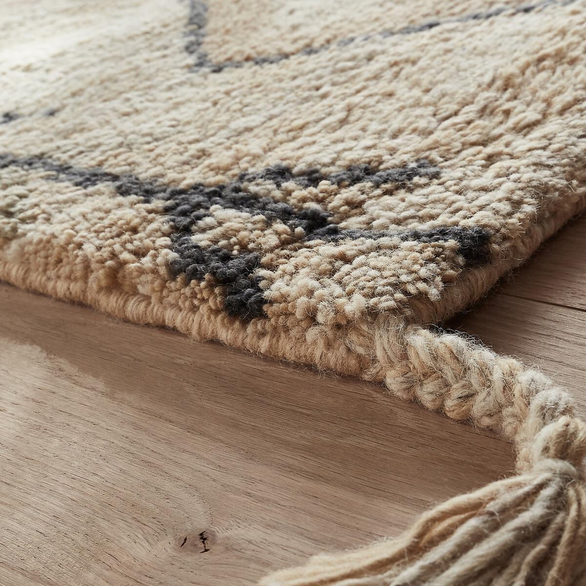 I love this hand-woven wool runner for its versatility and timeless appeal. Its neutral tones and subtle geometric pattern make it a great addition to both modern and rustic interiors, especially in hallways or alongside beds. It works well layered over wooden or stone flooring, adding warmth and texture without overpowering the space. Practical styling tips include pairing it with minimalist furniture for a fresh look or layering it over a larger rug for added depth. Keep it clean by vacuuming regularly and addressing any spills promptly, as wool is durable but benefits from gentle care. This piece is a practical yet attractive way to bring a cosy, handcrafted feel into your home.