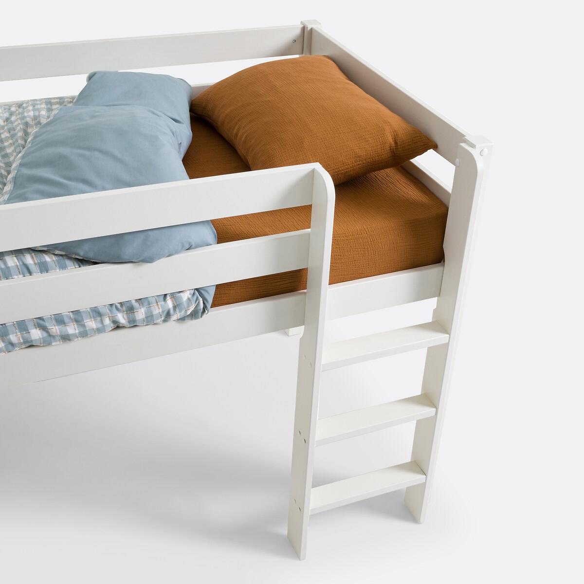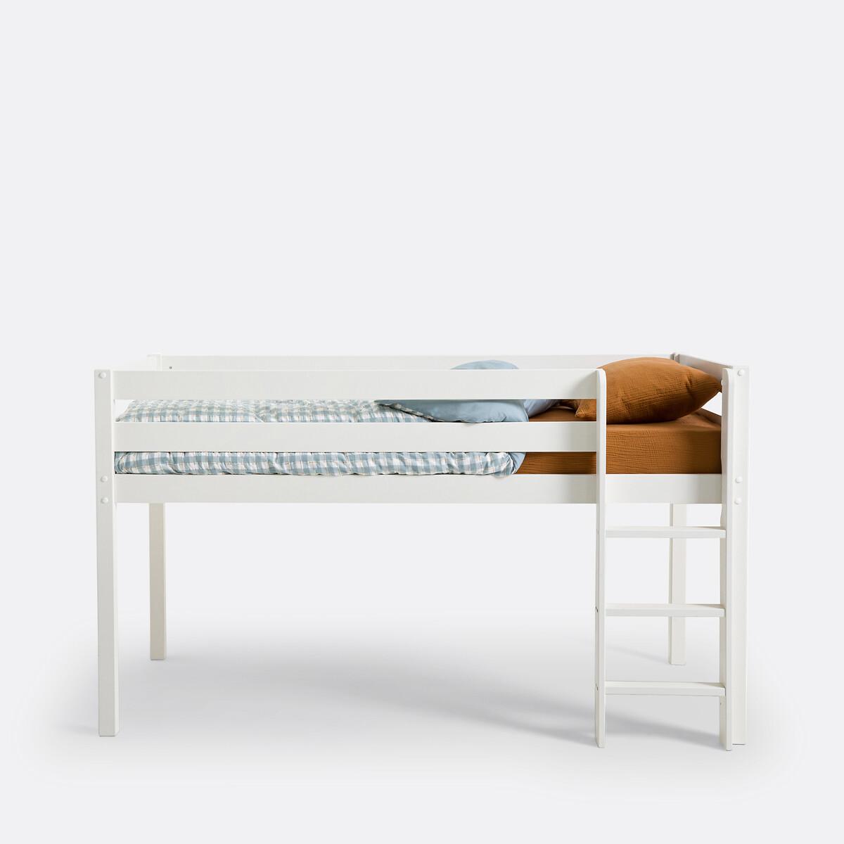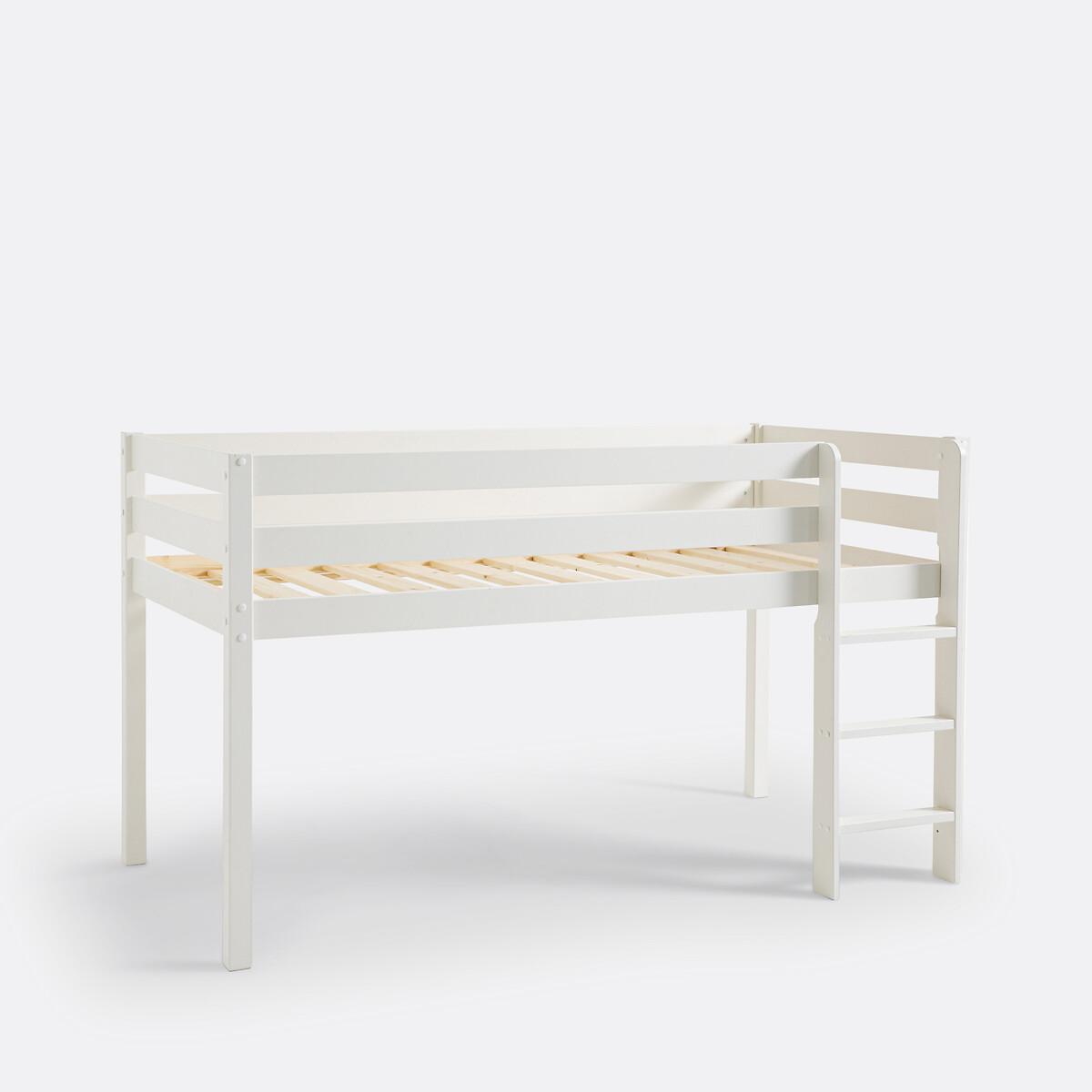 Mirka Mid-Height Bed. This Mirka mid-height bed is THE ideal solution for small bedrooms! By freeing up floor space, this mid-height bed allows for storage. Product Details • Ladder fixed to the side • Solid pine. FSC® certified wood • Acrylic finish • Comes with its slatted base • Takes 90 x 190 cm mattress (not supplied).Quality • This product complies with current safety requirements. • This bunk bed is not suitable for children under 6 years of age. Dimensions • Length: 197.6 • Height: 114cm • Depth: 102.7 cm • Height under bed: 72.5cmDelivery:. Assembly required. Available for home delivery. Note! Please check that all access points are large enough to accommodate your delivery (doors, stairs, lifts). • Made in Europe. • WOOD FROM SUSTAINABLY MANAGED FORESTS. FSC® certified wood comes from forests that are environmentally, socially and economically well managed. Parcel dimensions and weight • L208 x H20.7 x D25.7 cm • 35kg