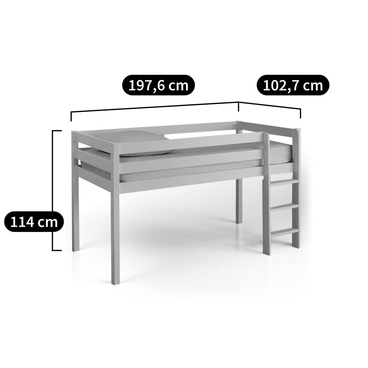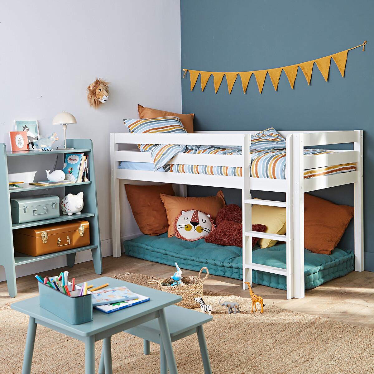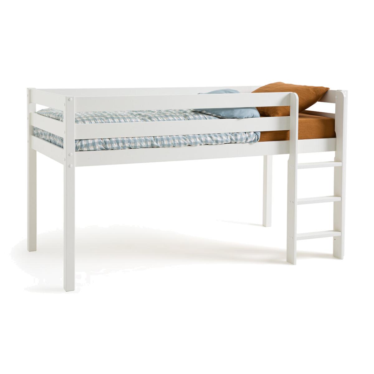 Mirka Mid-Height Bed. This Mirka mid-height bed is THE ideal solution for small bedrooms! By freeing up floor space, this mid-height bed allows for storage. Product Details • Ladder fixed to the side • Solid pine. FSC® certified wood • Acrylic finish • Comes with its slatted base • Takes 90 x 190 cm mattress (not supplied).Quality • This product complies with current safety requirements. • This bunk bed is not suitable for children under 6 years of age. Dimensions • Length: 197.6 • Height: 114cm • Depth: 102.7 cm • Height under bed: 72.5cmDelivery:. Assembly required. Available for home delivery. Note! Please check that all access points are large enough to accommodate your delivery (doors, stairs, lifts). • Made in Europe. • WOOD FROM SUSTAINABLY MANAGED FORESTS. FSC® certified wood comes from forests that are environmentally, socially and economically well managed. Parcel dimensions and weight • L208 x H20.7 x D25.7 cm • 35kg