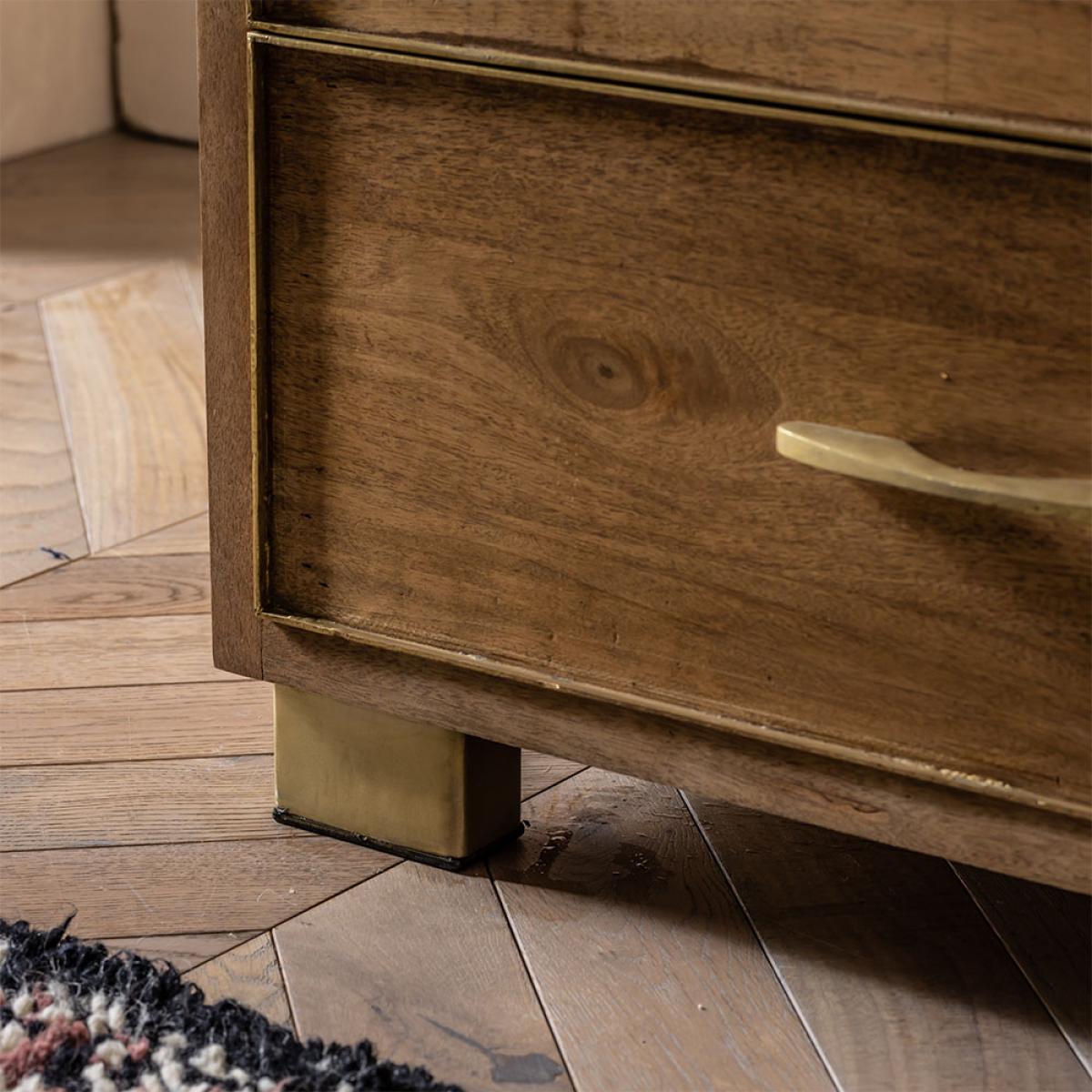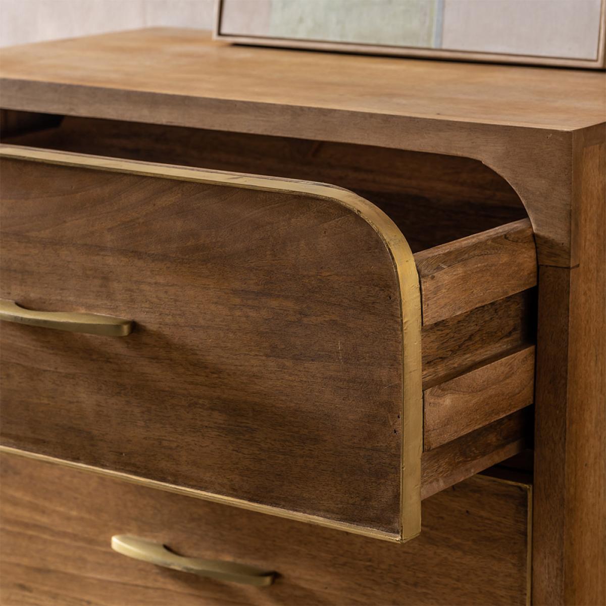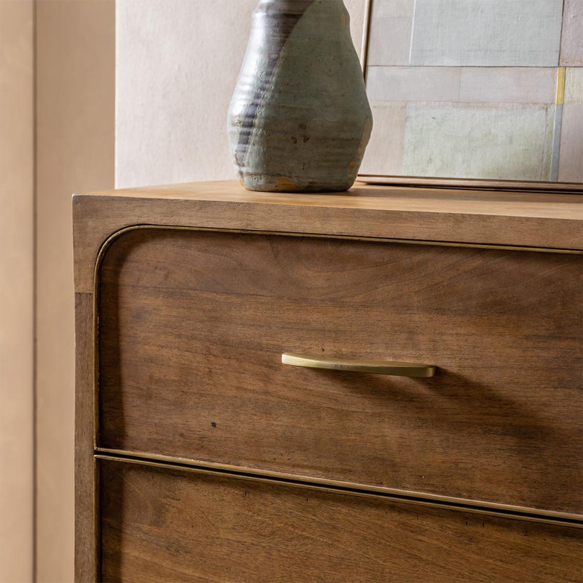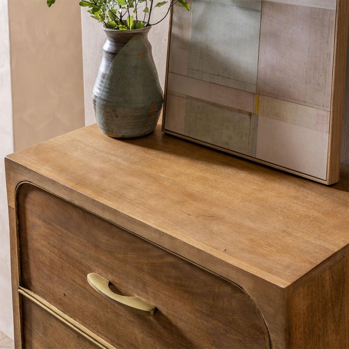 Complementing the rest of the pieces in the namesake collection, Miro is a tall wooden chest of drawers with traditional good looks. Those with a taste for classic bedroom furniture will appreciate its solid wooden frame, natural finish and timeless appeal. It’s an enduring design that’s built to last. A luxurious inset brass foil design features on the feet and drawers, adding further character, while the latter offers generous storage for clothing and accessories. Because every piece is lovingly handmade, each wooden tall boy is completely unique, which only adds to its charm.