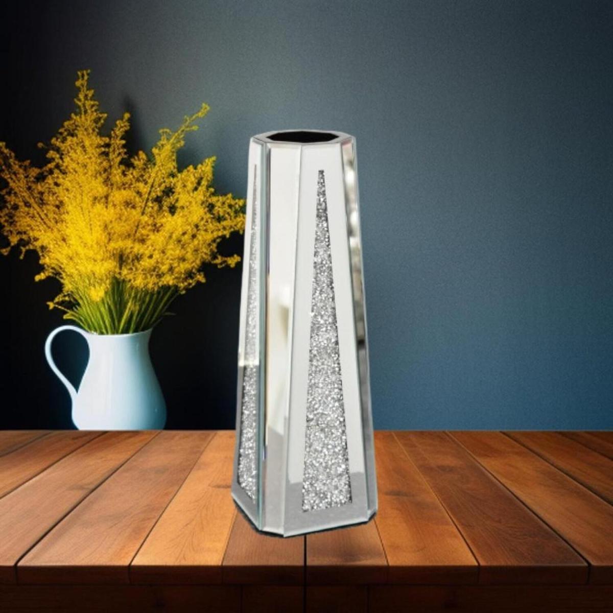 Mirror Flower Vase Crushed Diamond Silver Vases Living Room - Silver