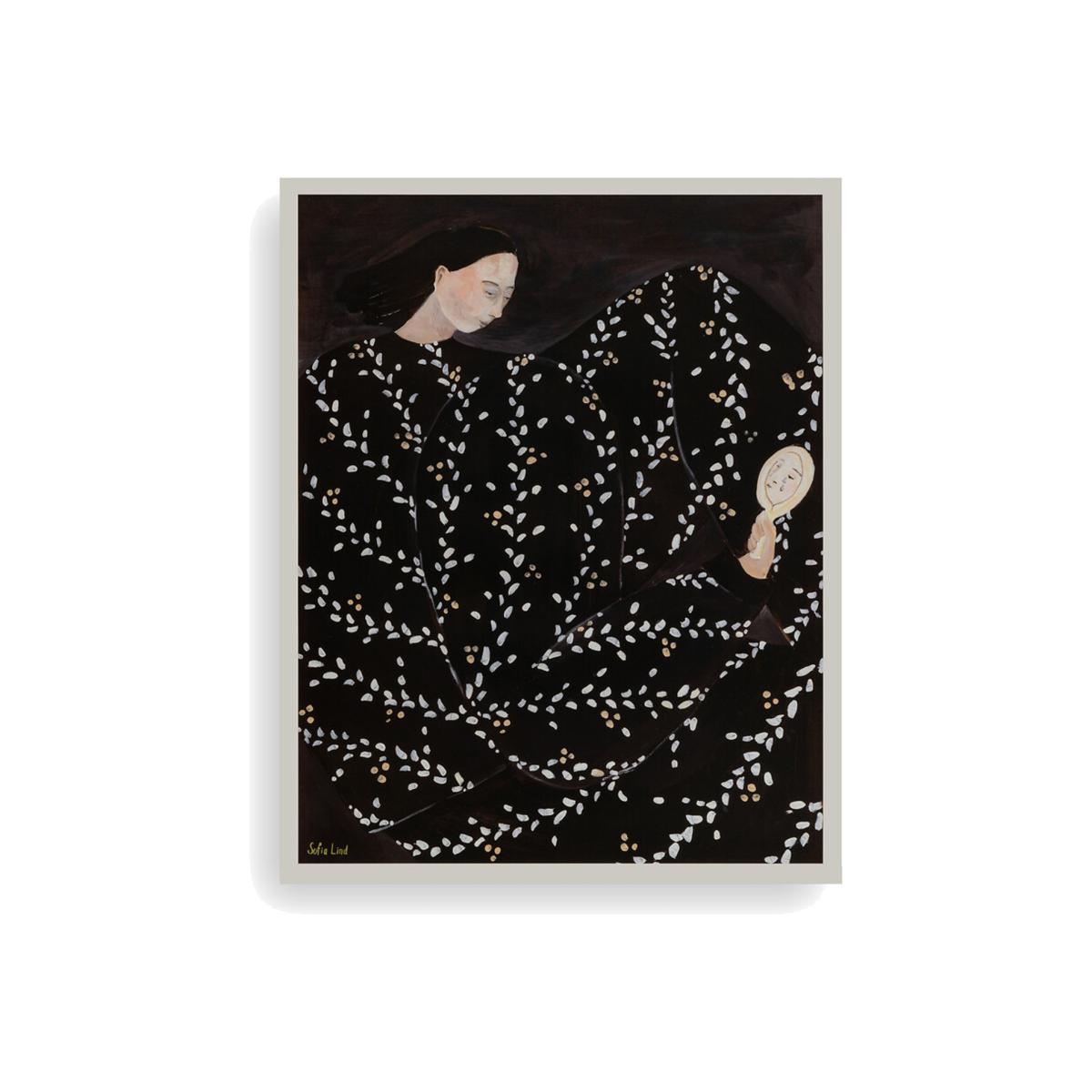 I love this print for its bold yet understated aesthetic-it's great for adding a touch of modern sophistication to a variety of interiors. The dark background contrasted with the subtle white details makes it versatile, working especially well in neutral or monochrome schemes, but it can also add depth in colourful spaces. It’s a fantastic piece for a living room or bedroom where you want something statement but not overpowering. Practical styling tips include pairing it with minimal furniture to let the artwork stand out or group it with other curated artworks for a gallery wall. Framing it simply in black or white helps keep the focus on the design, making it a versatile addition to contemporary or even understated traditional interiors.