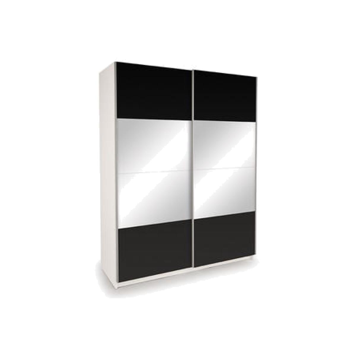 Dimensions H195cm x W150cm x D60cm. This modern sliding door wardrobe is finished in crisp Alpine White. The 2 large doors feature 1 High Gloss Black finish and 1 full mirror door the reflective mirror enhances any room. Both the black door and the mirror door come in 4 panels each which can be put put in any configuration. Features. Contemporary design Space saving sliding doors1 high gloss door and 1 mirrored door. Comes with 2 Doors2 Shelves2 Internal hanging rails. Strong wood combination construction Durable metal fixtures. Assembly required..