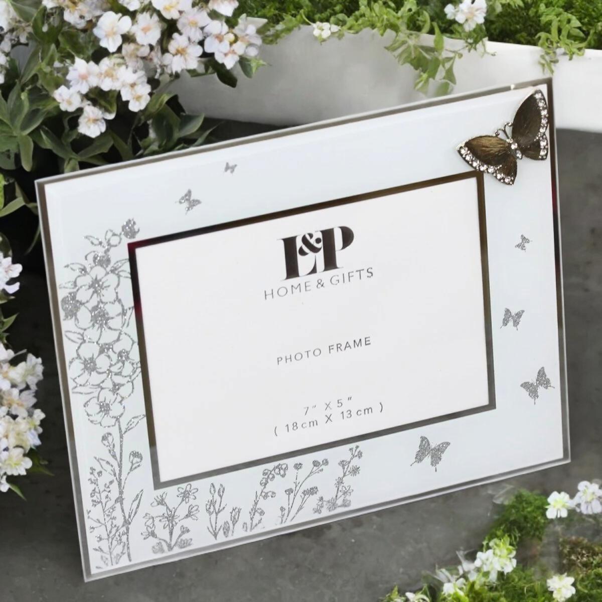 This Mirrored Floral With Butterfly Glass Photo Standing Frame is designed with both function and beauty in mind. Its delicate floral motifs and graceful butterflies exude sophistication, while its mirrored surface projects light and creates an entrancing shimmer to boost the beauty of your pictures. Crafted with precision, its size makes it perfect for display on the mantel, side table, or shelf. Let this timeless frame symbolize freedom and transformation, as it sprinkles joy and positivity throughout your home decor. Our frame is an artwork that will captivate and enhance your living space.