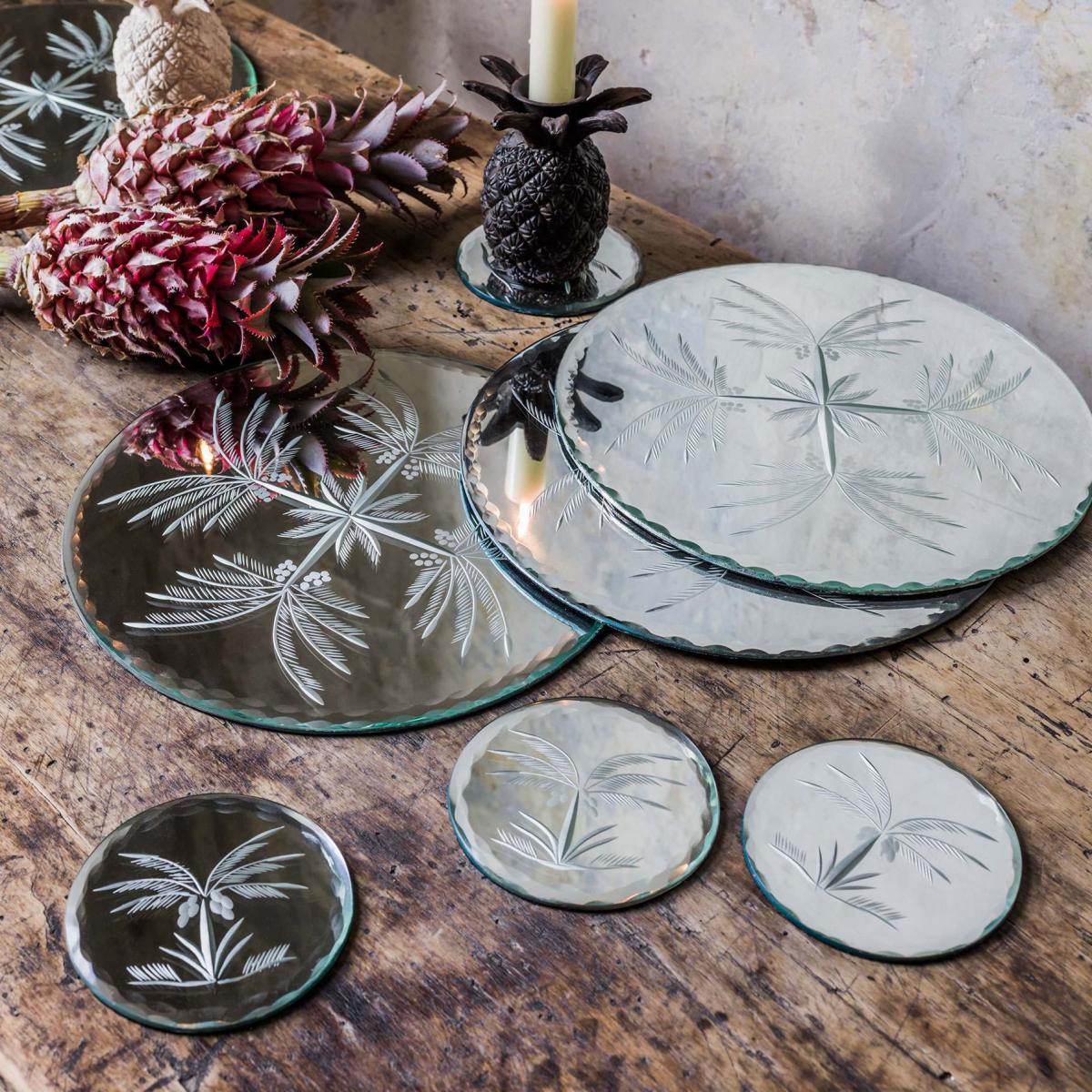 These Etched Mirrored Glass Palm Tree Coasters And Place Mats are the perfect way to add a touch of elegance to your dining table. With a palm tree design, these will help create a statement dining table with a subtle touch of the tropics.