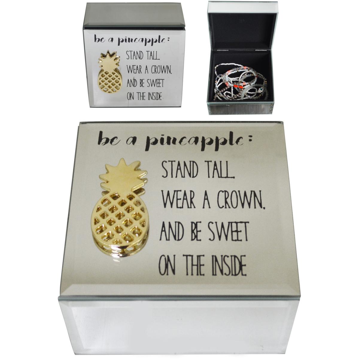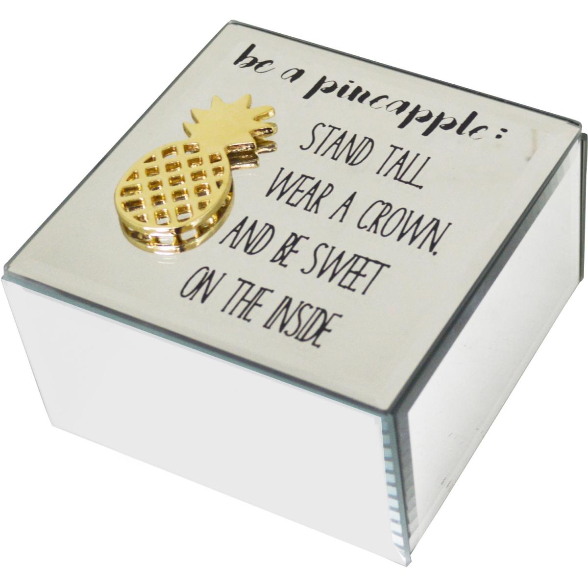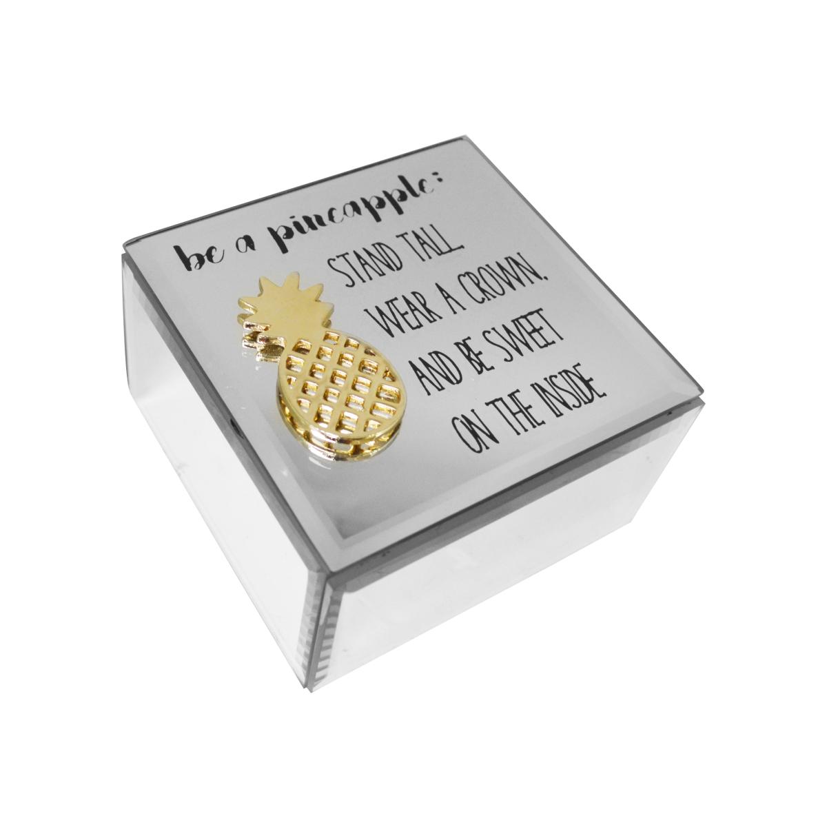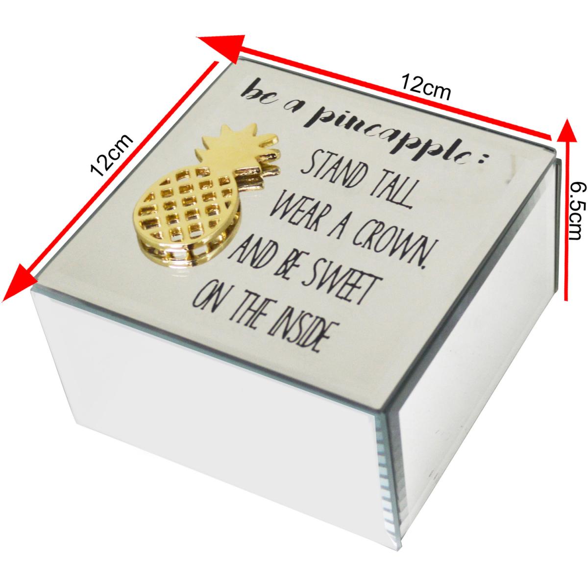 Mirrored Glass Pineapple Jewellery Storage Trinket Box Case - Mirrored