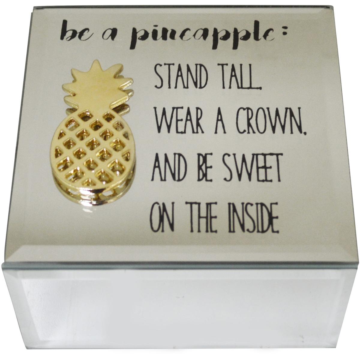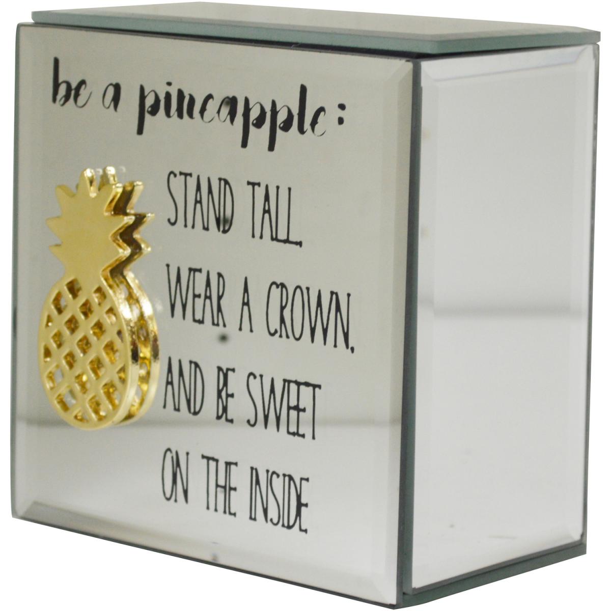 A beautiful addition to any room for any shelf, this jewellery box features a unique mirrored glass design with inspirational instructions on how to 'be a pineapple': 'Stand Tall, Wear a Crown, And Be Sweet On the Inside' alongside a quirky 3D Pineapple. The hinged lid covers a felt-lined interior of this jewellery box making it aesthetic yet functional for those decorative pieces at home. A great decorative adornment for a hallway, as a storage box in the bathroom, or on the bedside table.