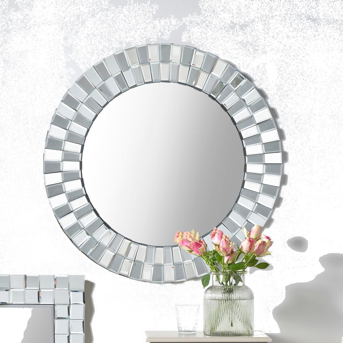 Mirrored Glass Tile Round Wall Mirror, 80cm Silver