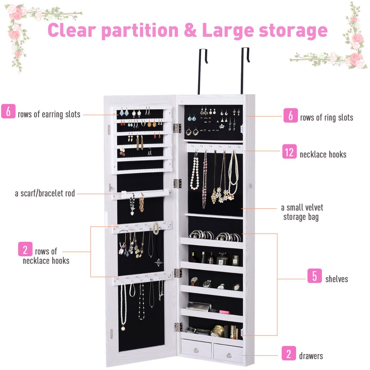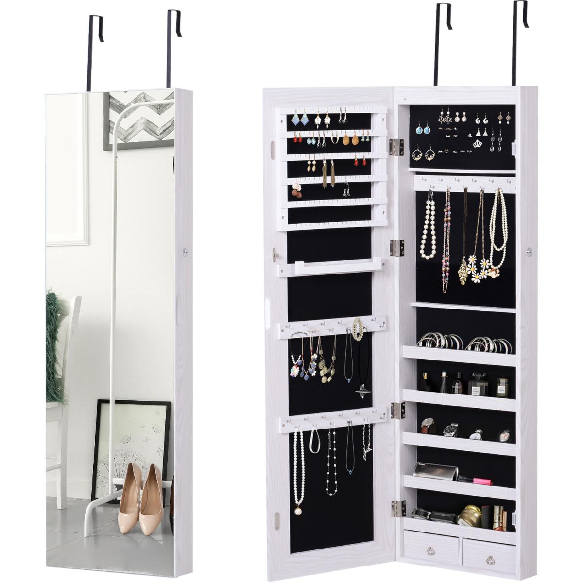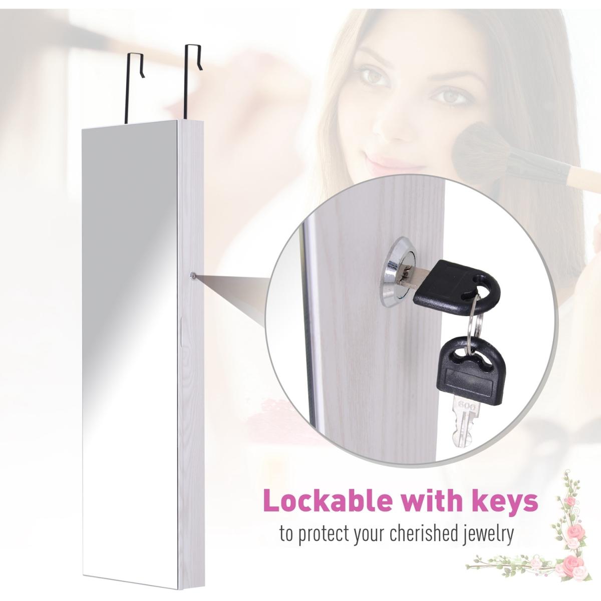 Keep your jewellery and perfumes discreetly and elegantly stored away with this mirrored cabinet from HOMCOM. In a hanging design to save floor space, giving you lots of storage space and freeing up space elsewhere in your room. With six LED lights placed on the inside top to light up whilst searching for your jewellery. The perfect blend of beauty and functionality.