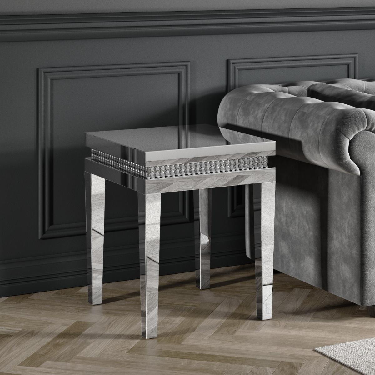 Mirrored Side Table with Diamond Gems - Jade Boutique