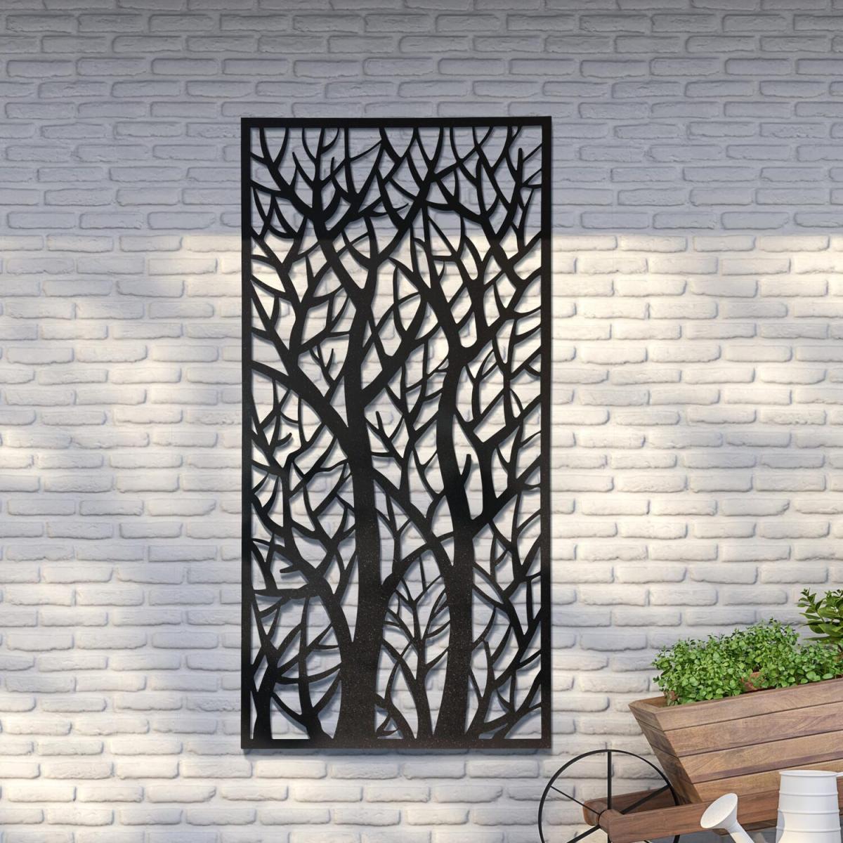 MirrorOutlet Amarelle Large Metal Tree design Garden screen 180cm X 90cm - Black
