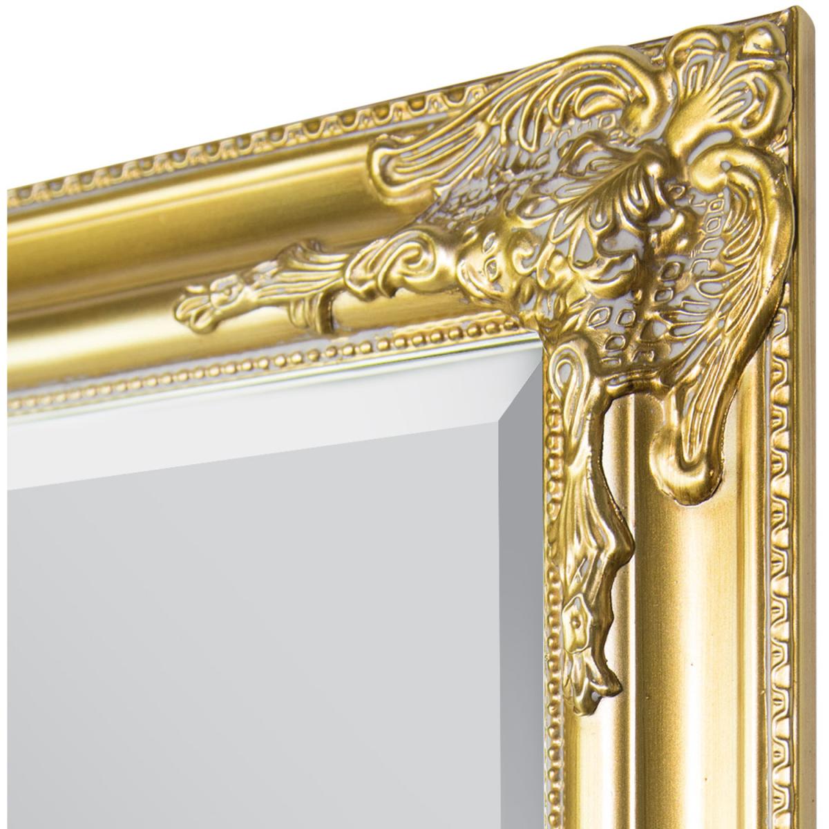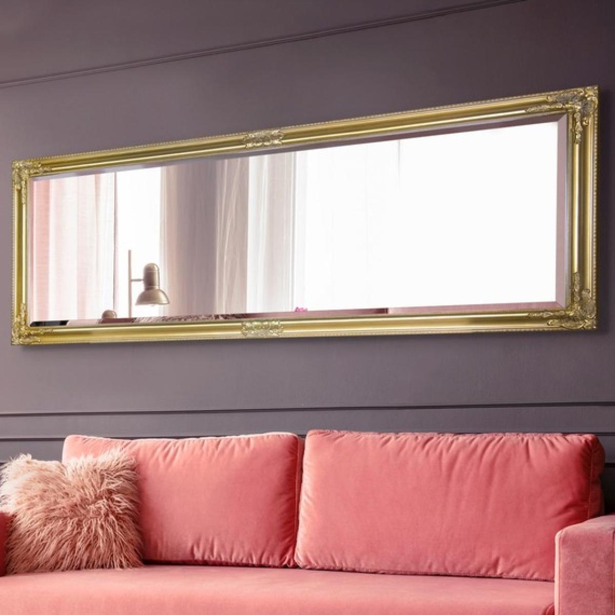 MirrorOutlet classic ornate full-length Gold wall mirror 180cm x 70cm overall size. The designs boast ornate detailing in all four corners and sides. The mirror glass itself comes bevelled. This mirror has a glass size of 5ft6 x 23inches 168cm x 58cm and has an overall size of 6ft x 2ft4.