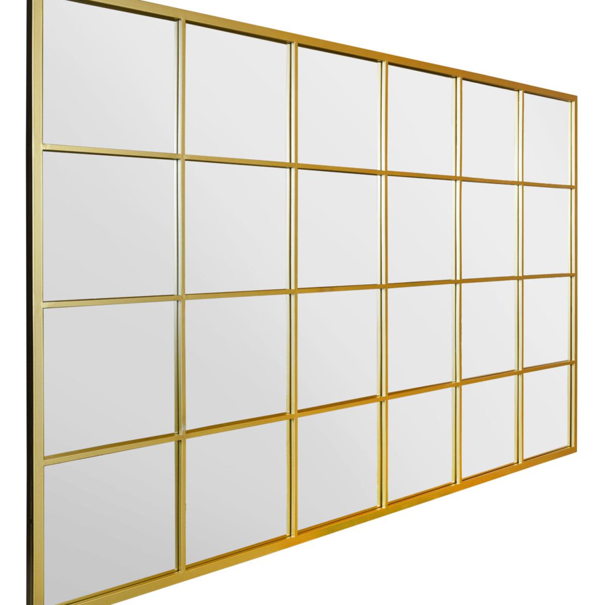 MirrorOutlet New Fenestra Mirror range. Featuring Gold Metal Window Frame With Quality Mirror Glass. This Mirror can be wall hung or free standing as a leaner mirror to give that full body length look and feel. The mirror comes with hooks for portrait and Landscape wall hanging already fixed to the backing board to the rear for fuss free installation. This allows the mirror to sit as flush to the wall as possible for that modern look. Being the very finest quality makes this mirror heavy and weighs around 20kgs. Overall size 69" X 43" (174CM X 110C. M).