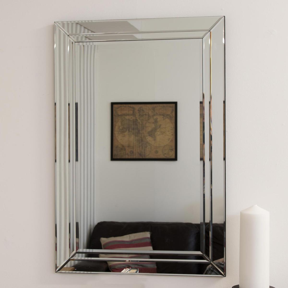 Stunning silver double-edged Venetian mirror with premium glass to the edges. This mirror boasts high-quality Mitred corners on the outside with a mirrored inner frame giving a real modern look to your home. This mirror has an overall size of 3ft x 2ft 90cm x 60cm and we also stock this mirror in three other sizes.