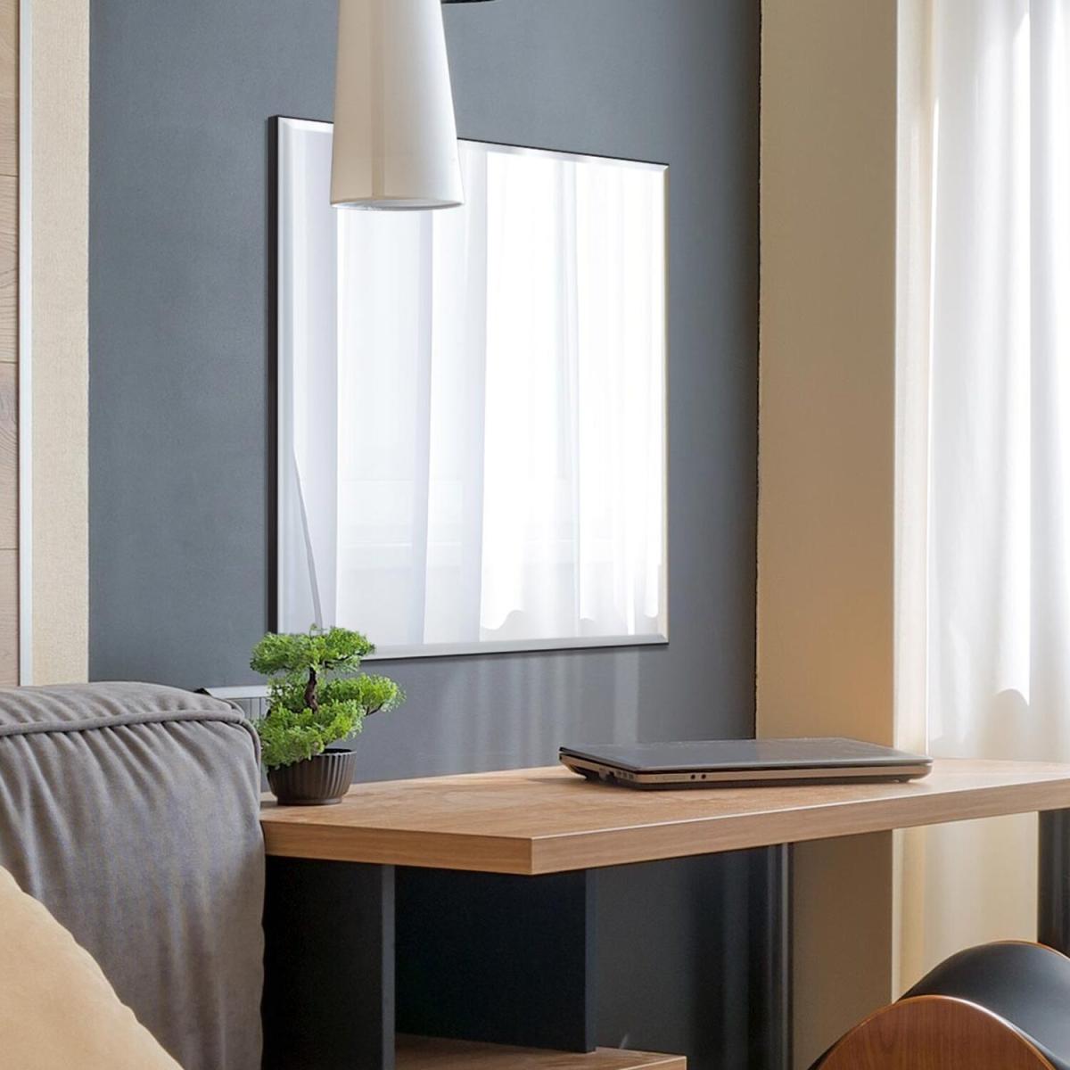 I’d reach for this frameless bevelled Venetian mirror for its clean lines and all-glass finish - at around 68×58cm it’s ideal above a narrow console, dressing table or bathroom vanity without overpowering the space. It suits contemporary, Scandi or mid-century schemes where you want to maximise light and add depth without a bulky frame. For styling, hang it at eye-level centrally over a slim console and flank it with a ceramic vase or a small tray, or lean it against a pale hallway wall. In a bathroom, pair it with simple brass or chrome fittings to keep the look fresh and streamlined.
