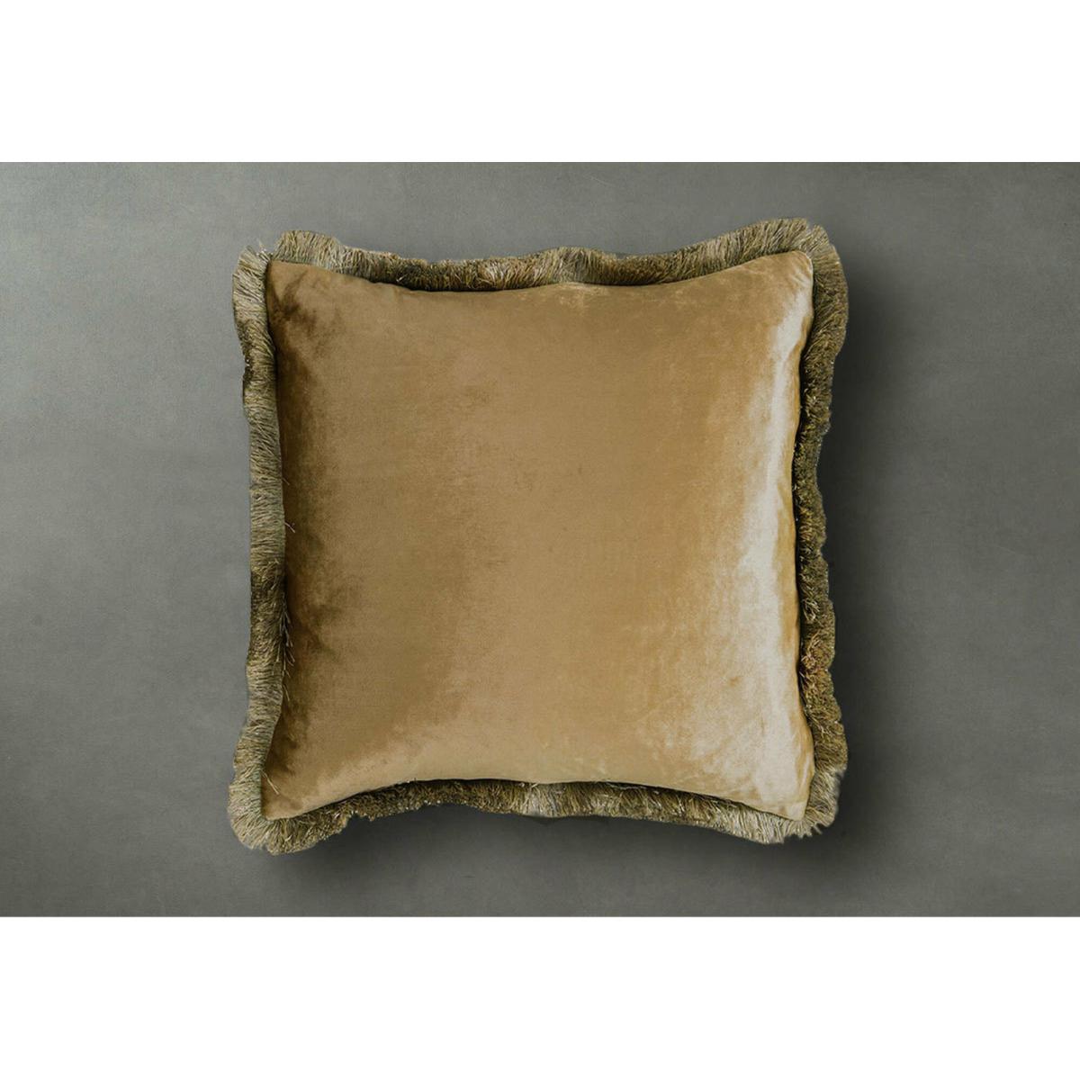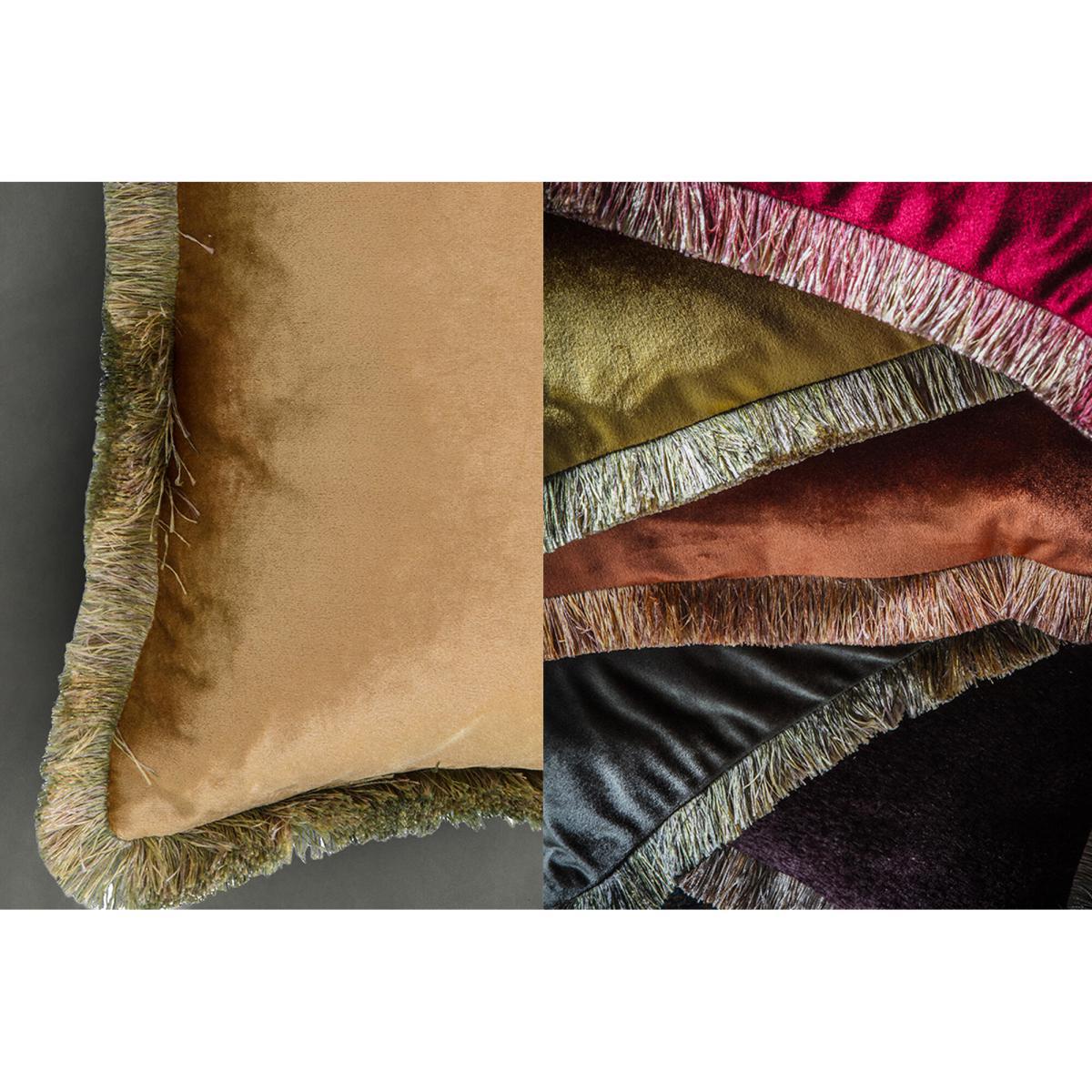 I love this cushion for its rich ochre hue and plush velvet texture, which instantly brings warmth and luxury to a space. The fringed border adds a touch of relaxed elegance, making it versatile enough to sit comfortably in both contemporary and traditional interiors. It works particularly well in living rooms with neutral or earthy colour palettes, acting as a statement piece on sofas or armchairs. For styling tips, try pairing it with other textured cushions in complementary shades or layering it with throws to create a cosy yet sophisticated look. Its tactile quality also makes it perfect for creating inviting, tactile accents in your scheme.